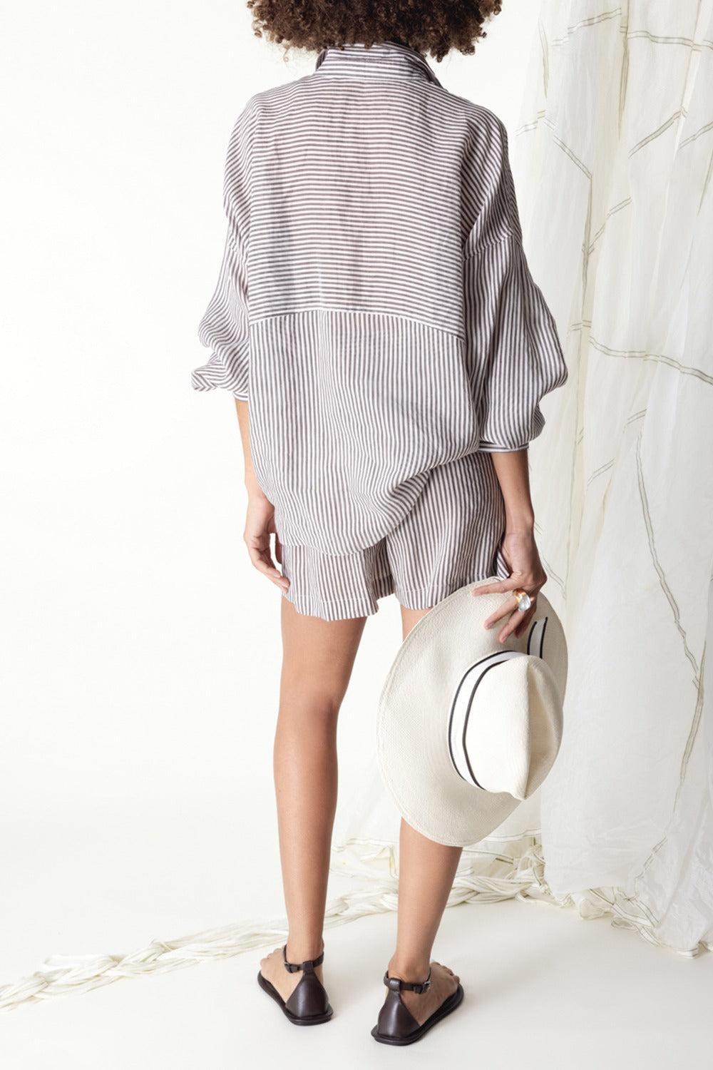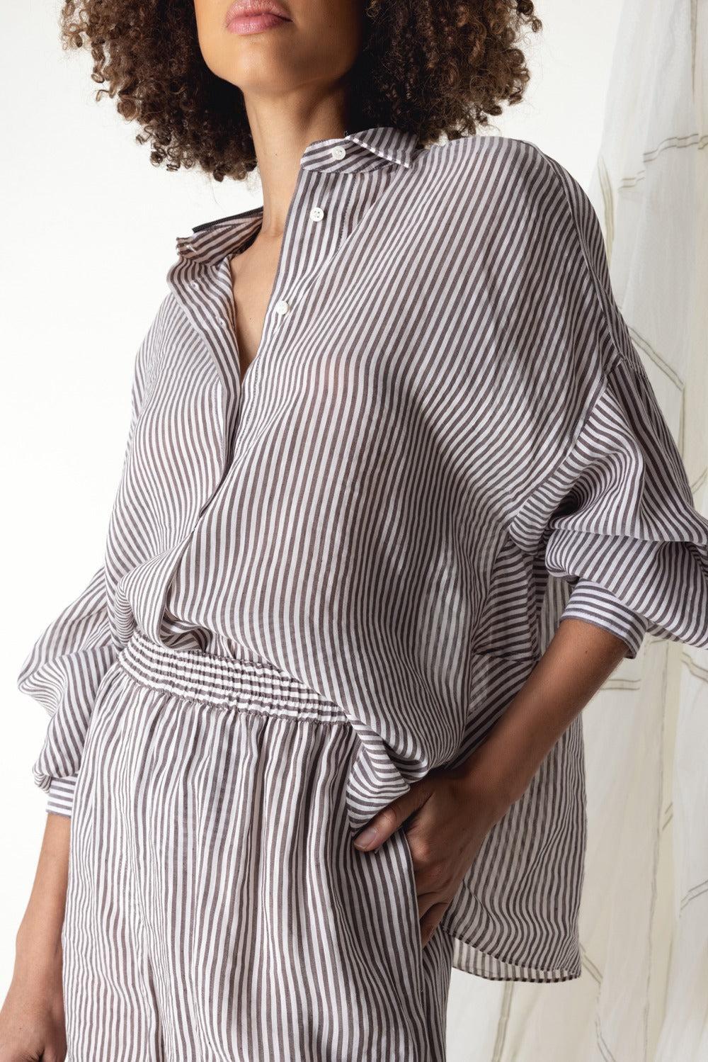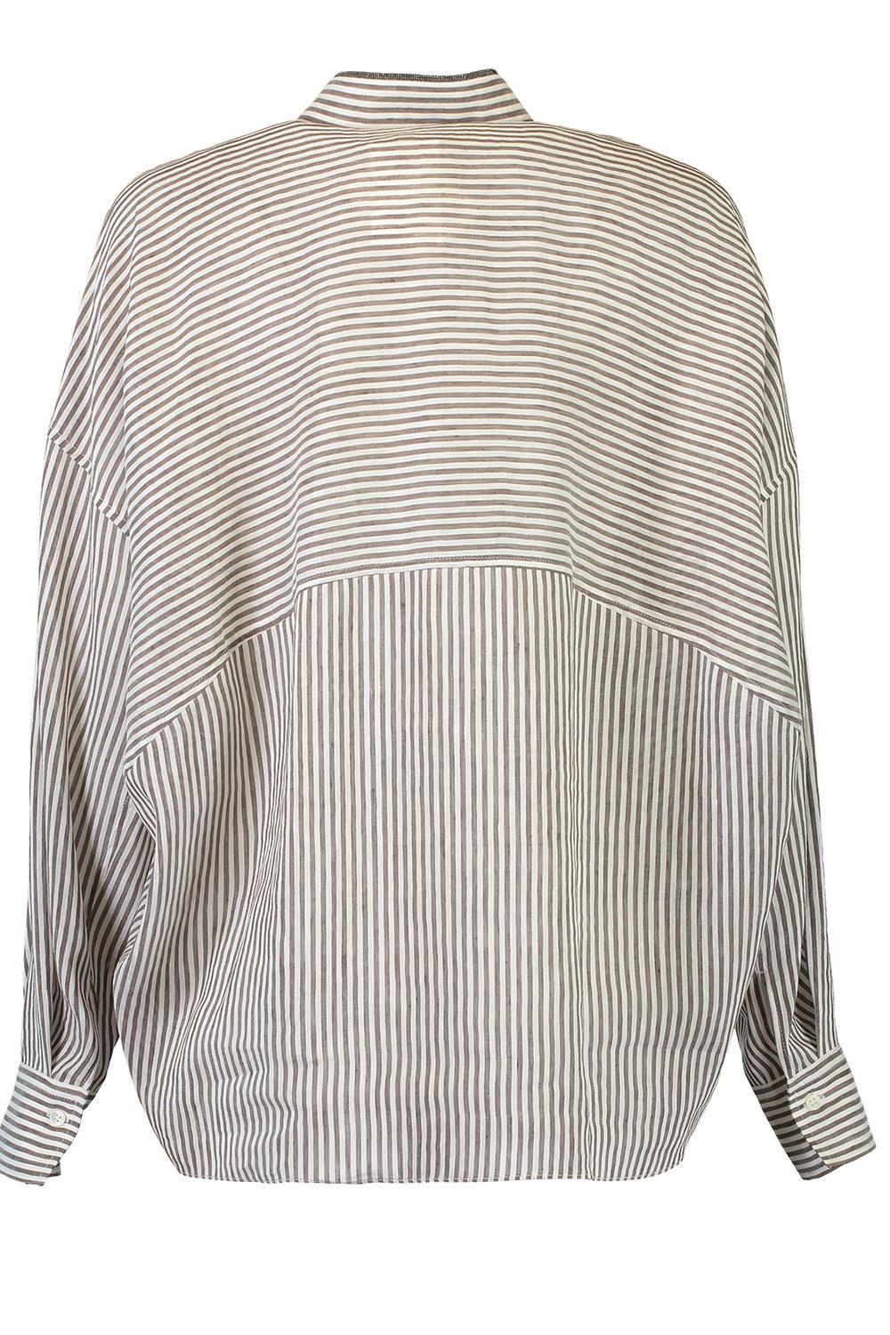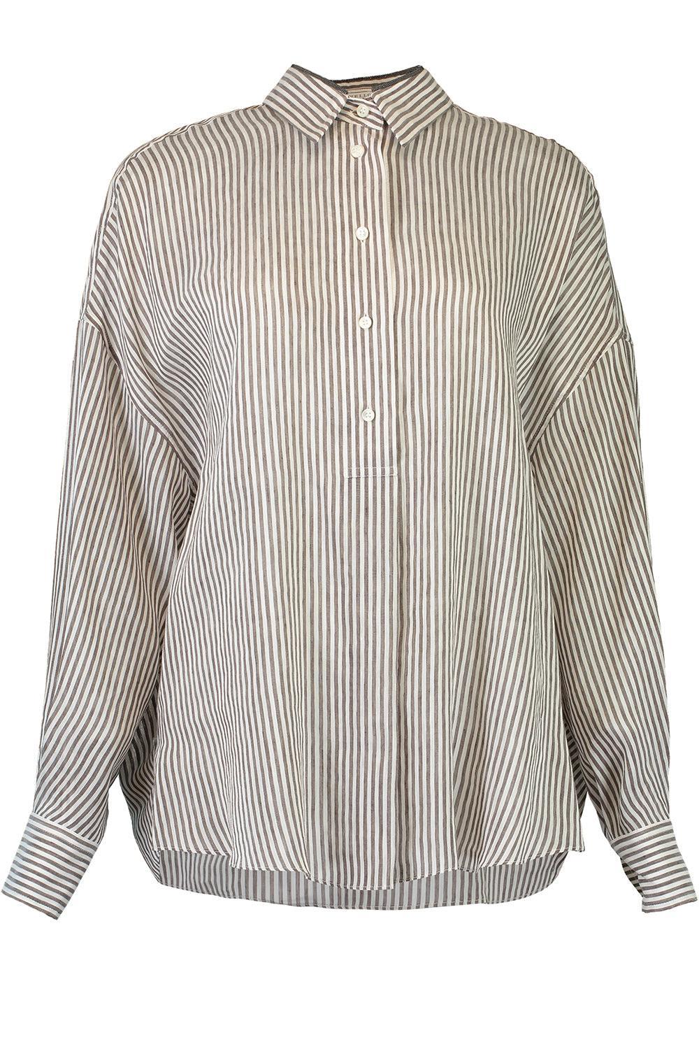 Brunello Cucinelli pinstripe blouse in white / brown.