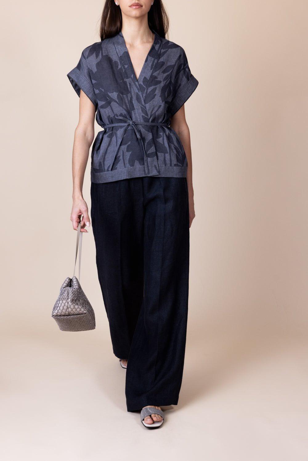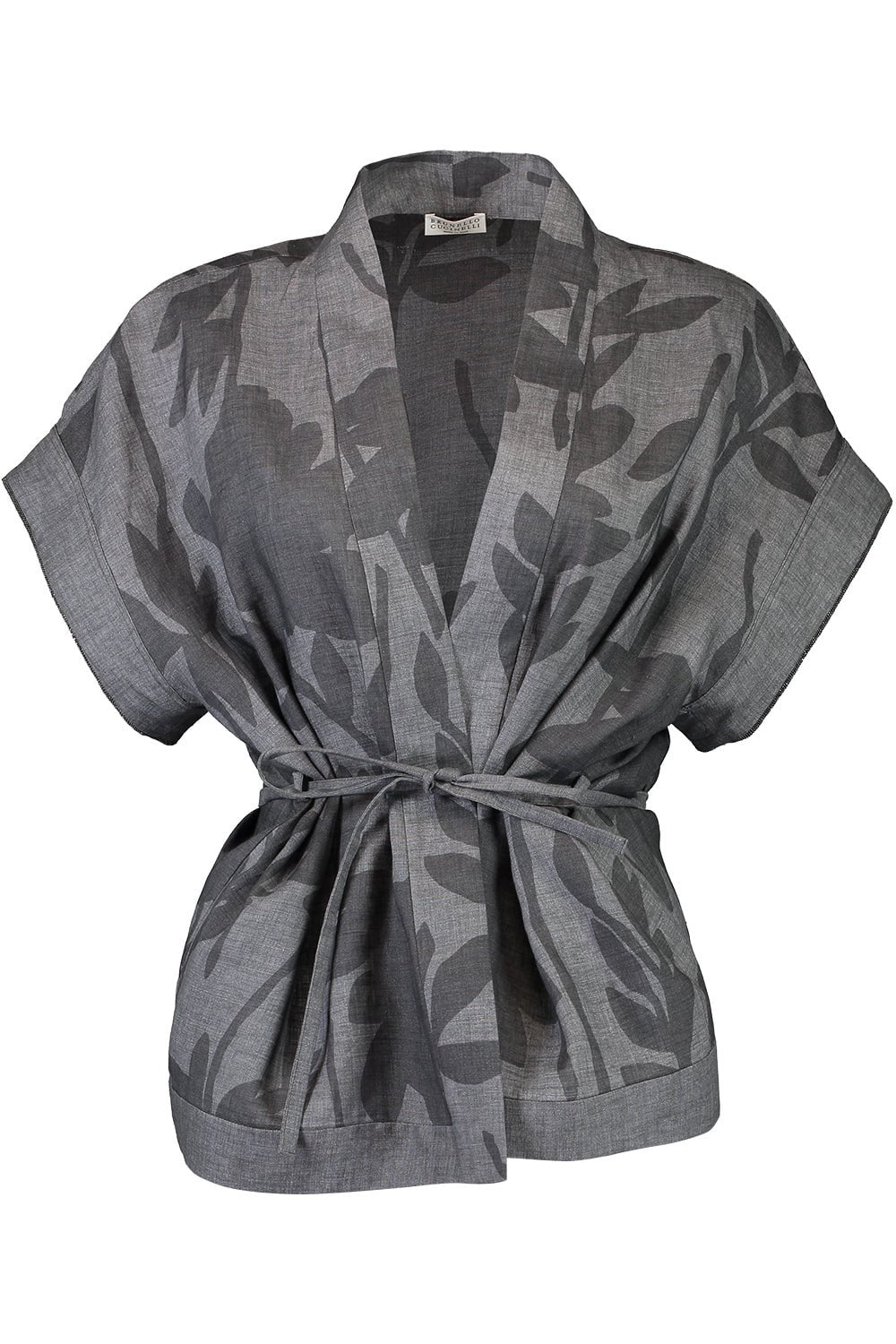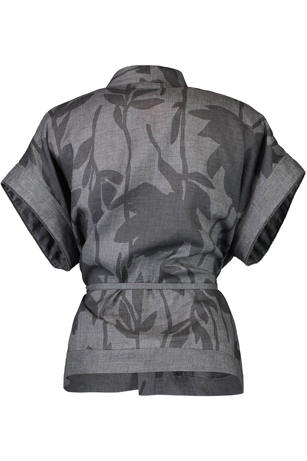 Brunello Cucinelli short sleeve wrap blouse in grey.