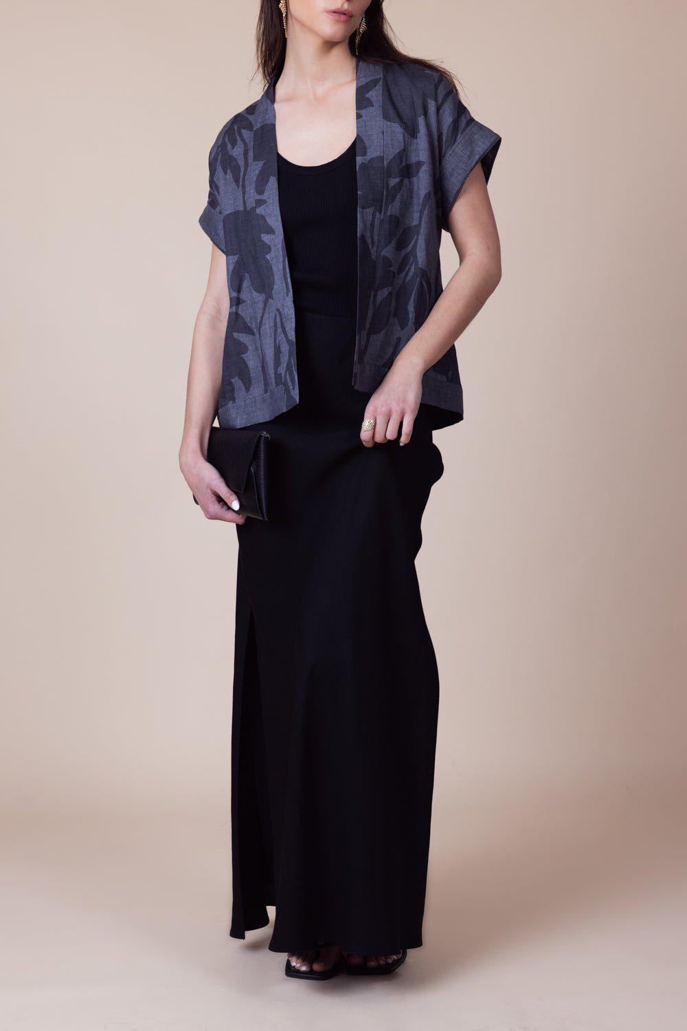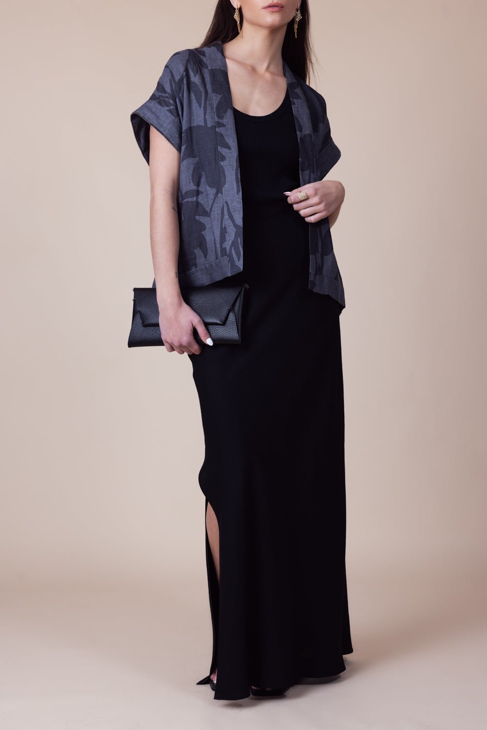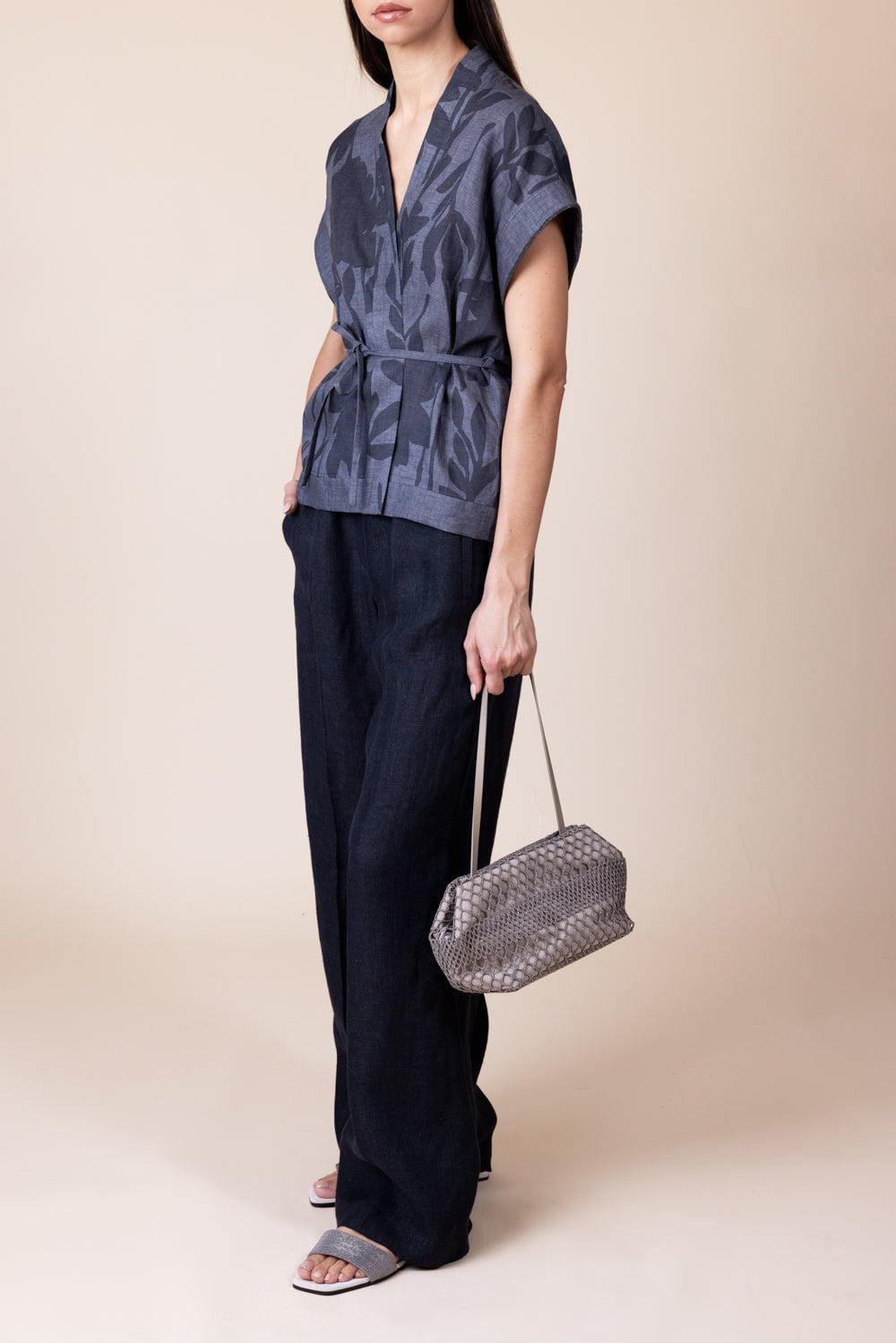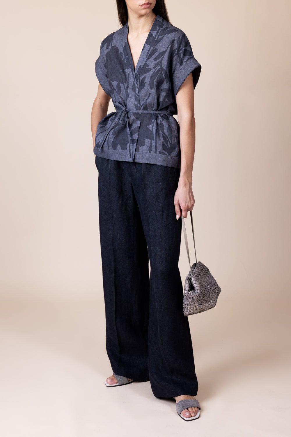 Brunello Cucinelli short sleeve wrap blouse in grey.