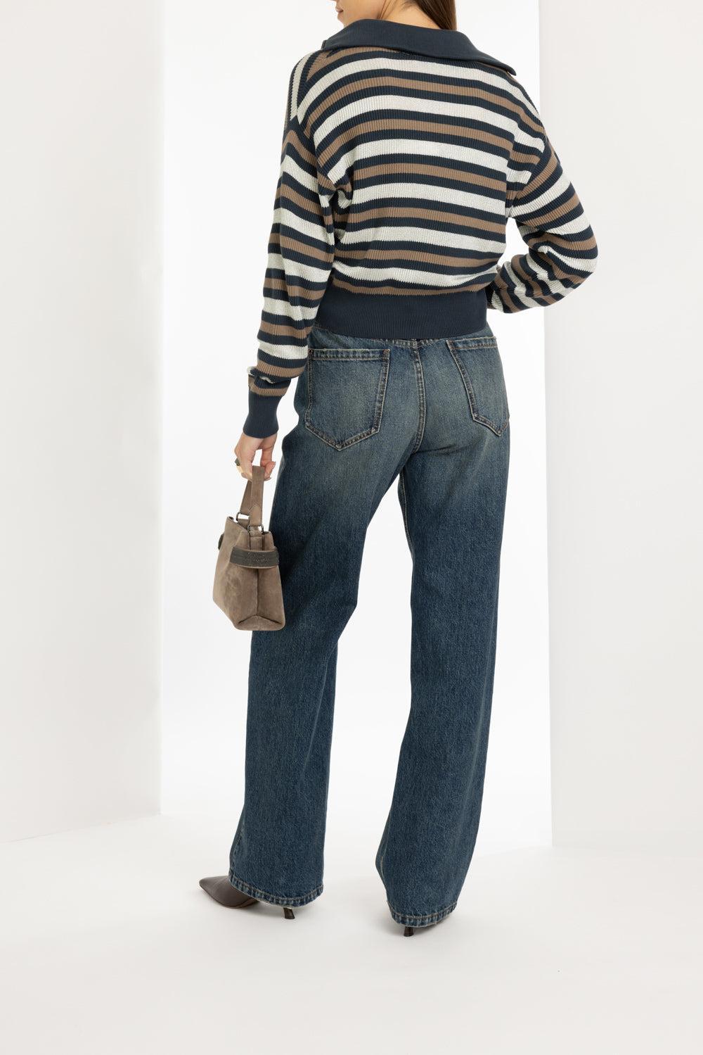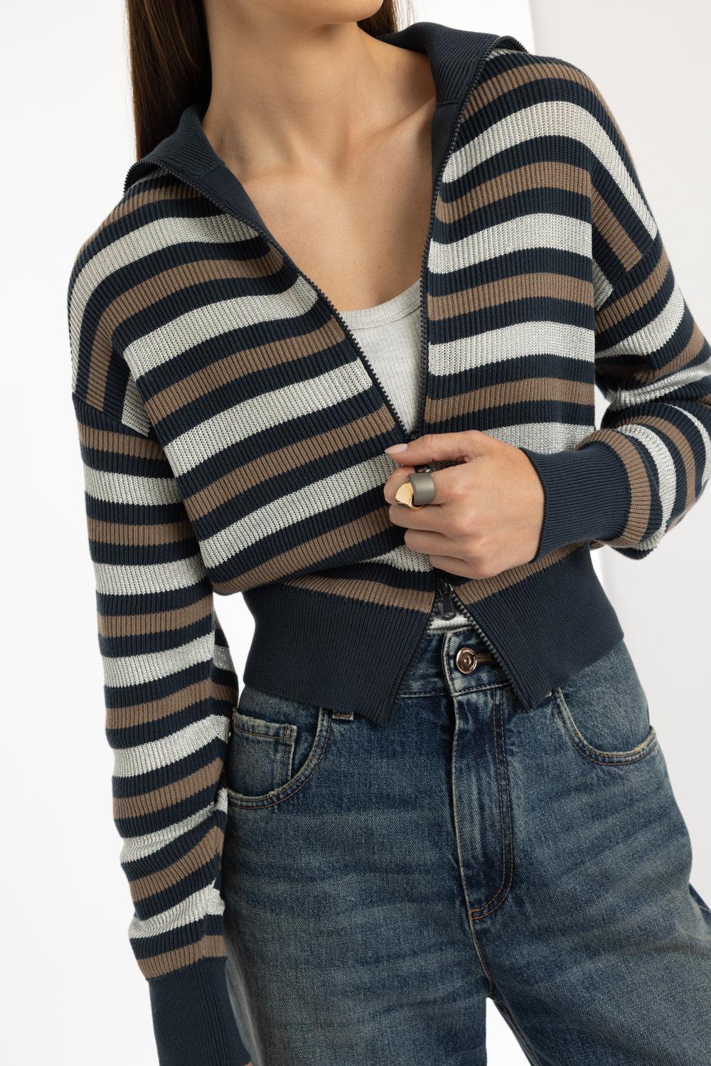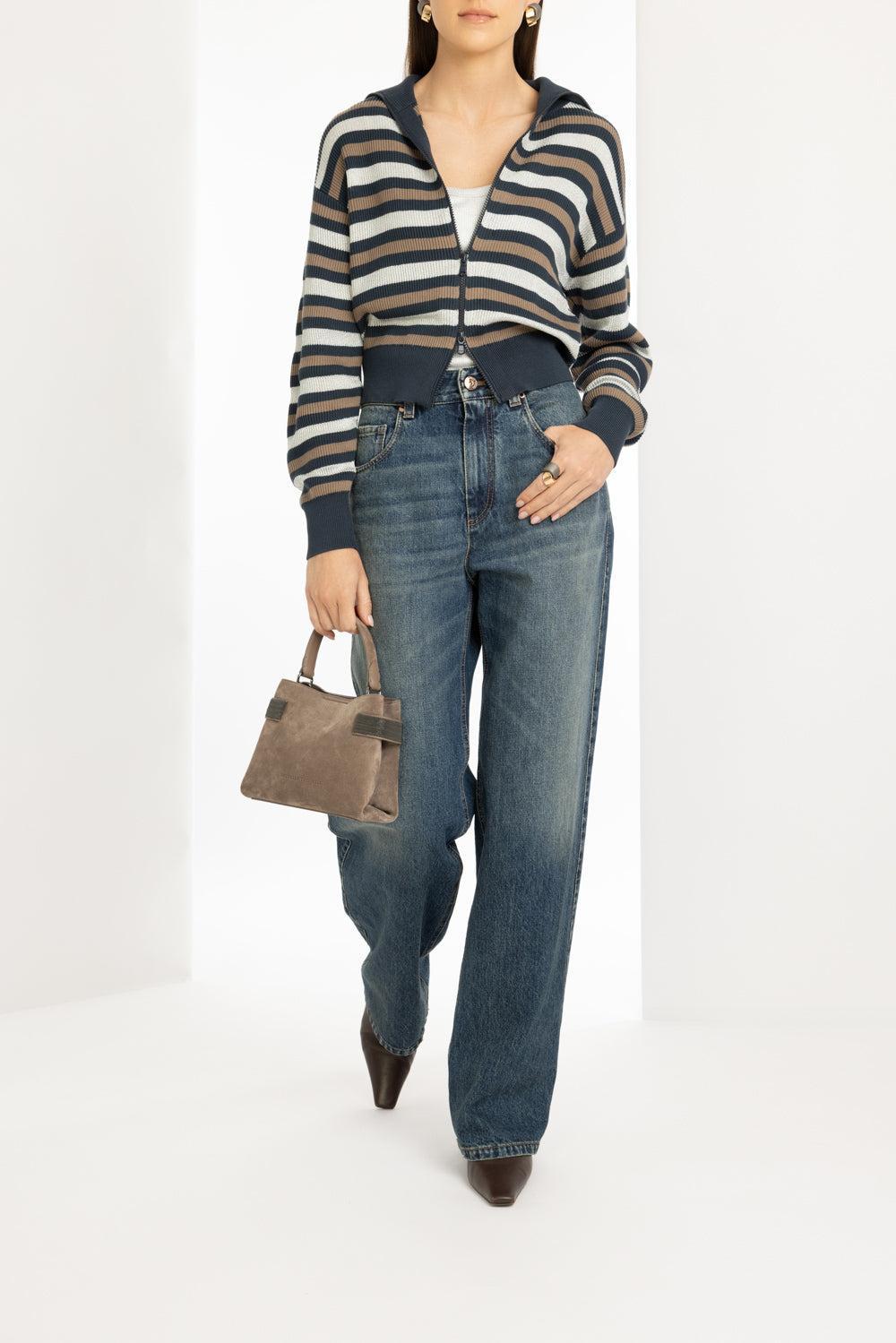 Brunello Cucinelli winter marina cardigan in navy / brown.
