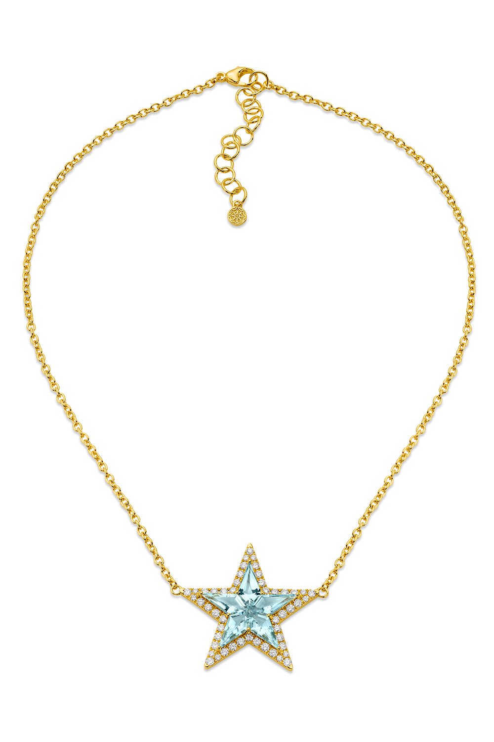 Buddha Mama aquamarine kite star necklace in yellow gold.