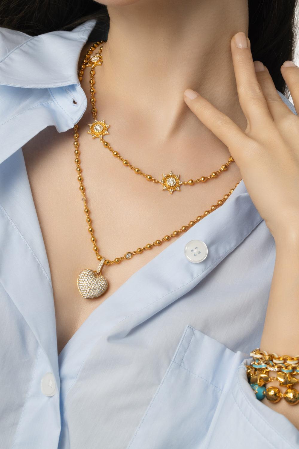 Buddha Mama diamond medium puffy heart pendant in yellow gold.