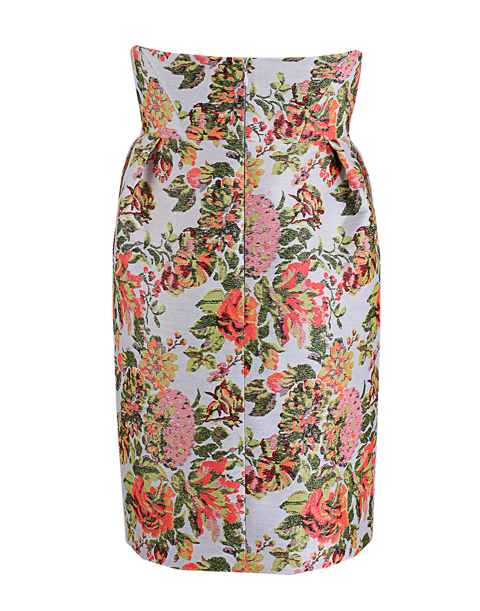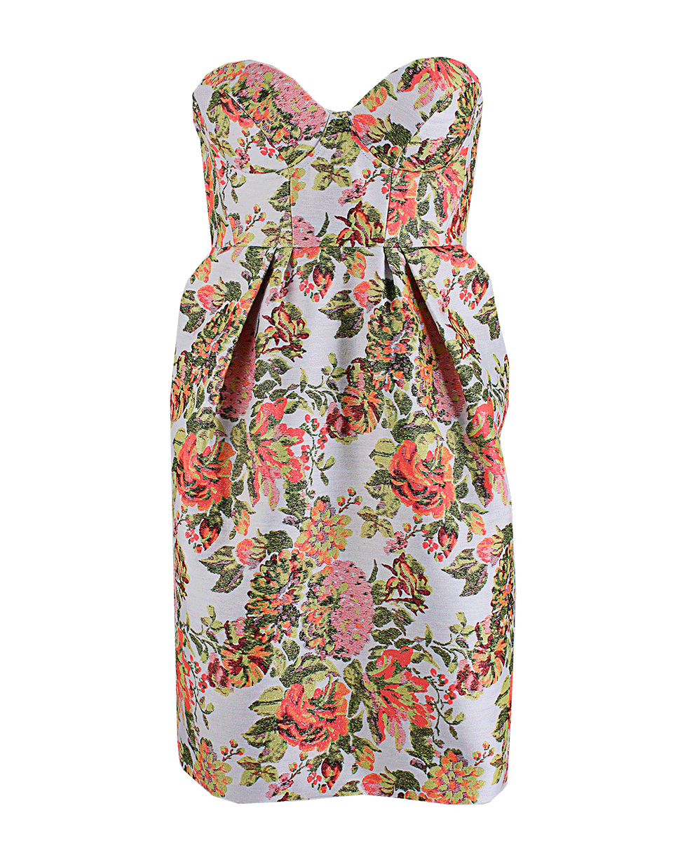 With all its blossoming beauty, this Stella McCartney bustier jacquard floral dress will flatter your figure flawlessly. Flourish this dress only with a color complimenting tote for a weekend wander with someone special.