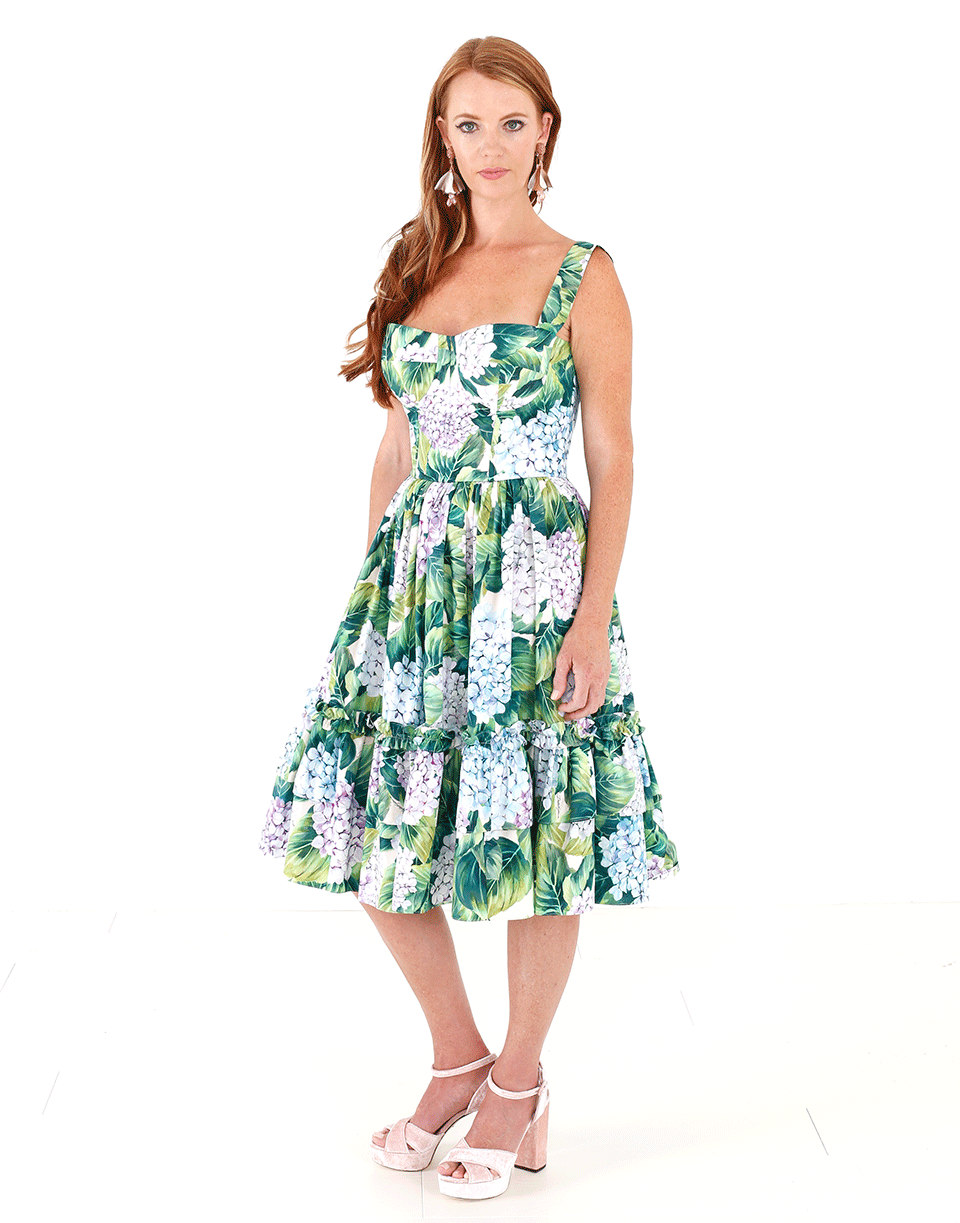 Flared Full Skirt With Slim Fitting Bodice And Calf Length Cut