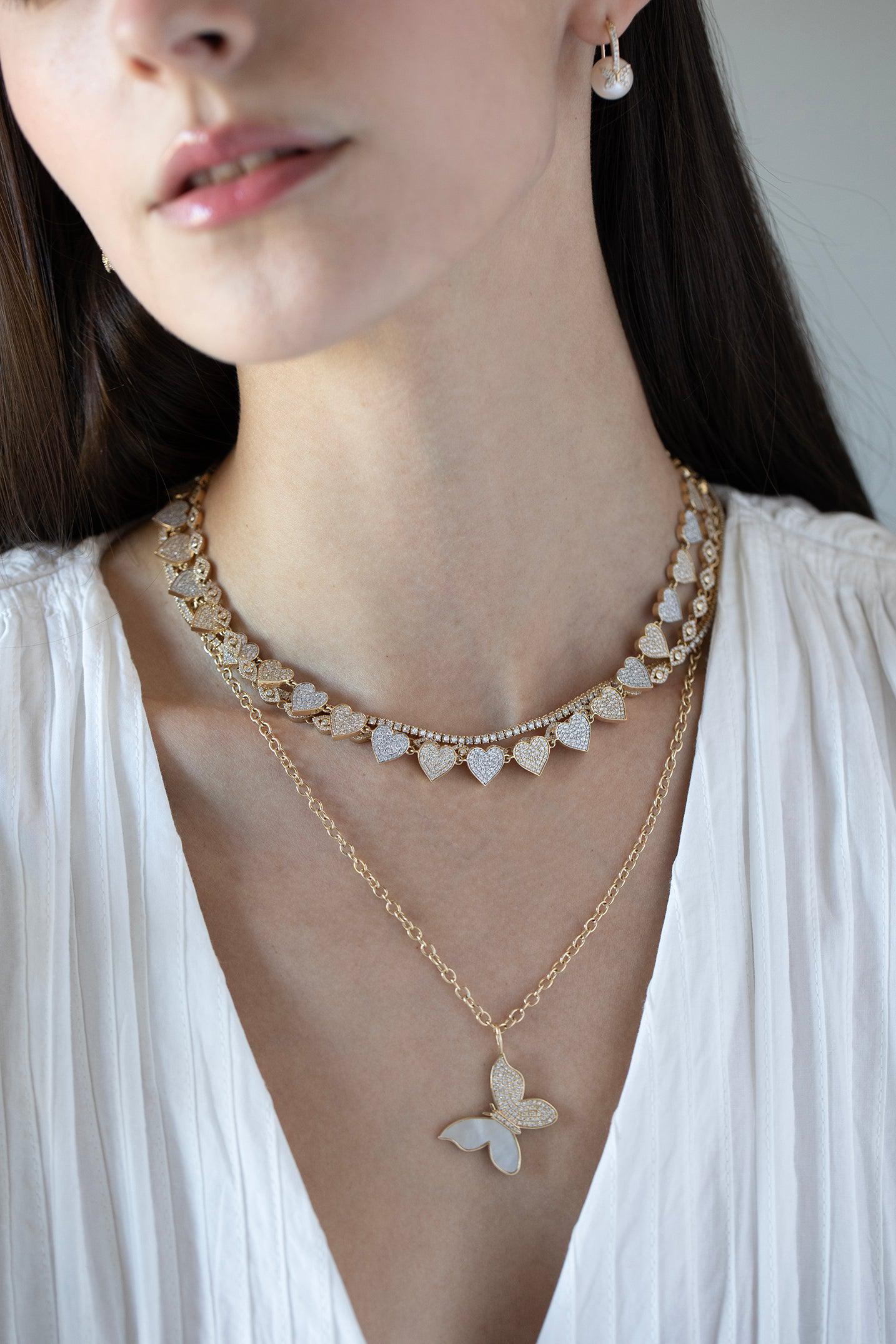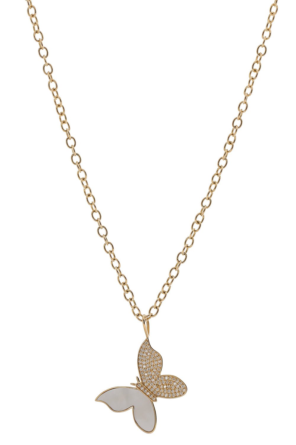 Sydney Evan butterfly necklace in yellow gold.