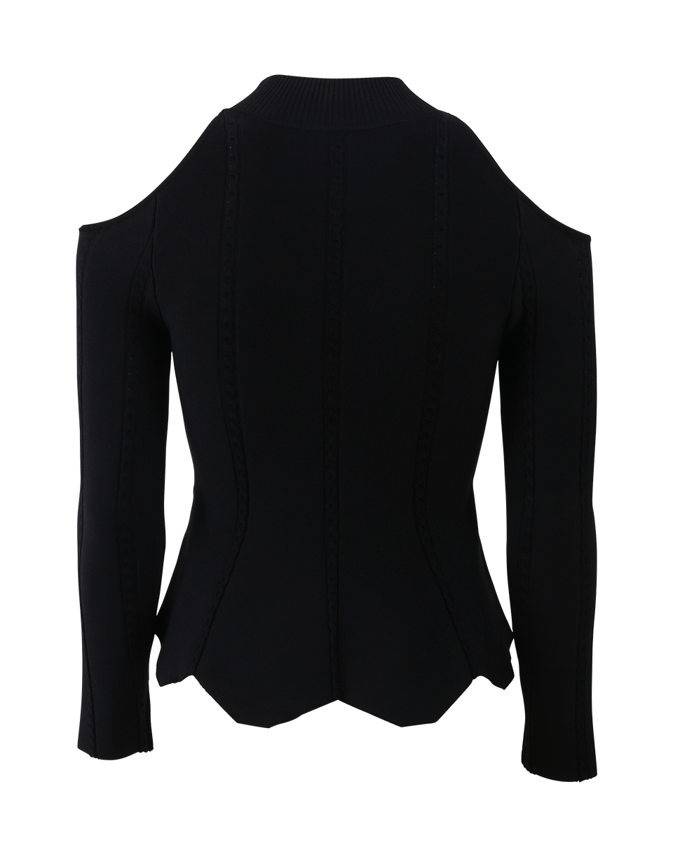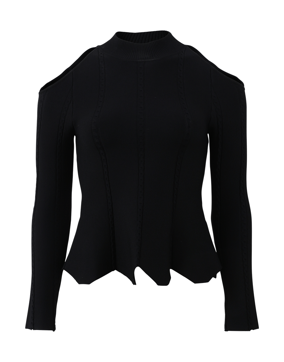 Ribbed Mock Neckline With Cut Out Shoulder Long Sleeves