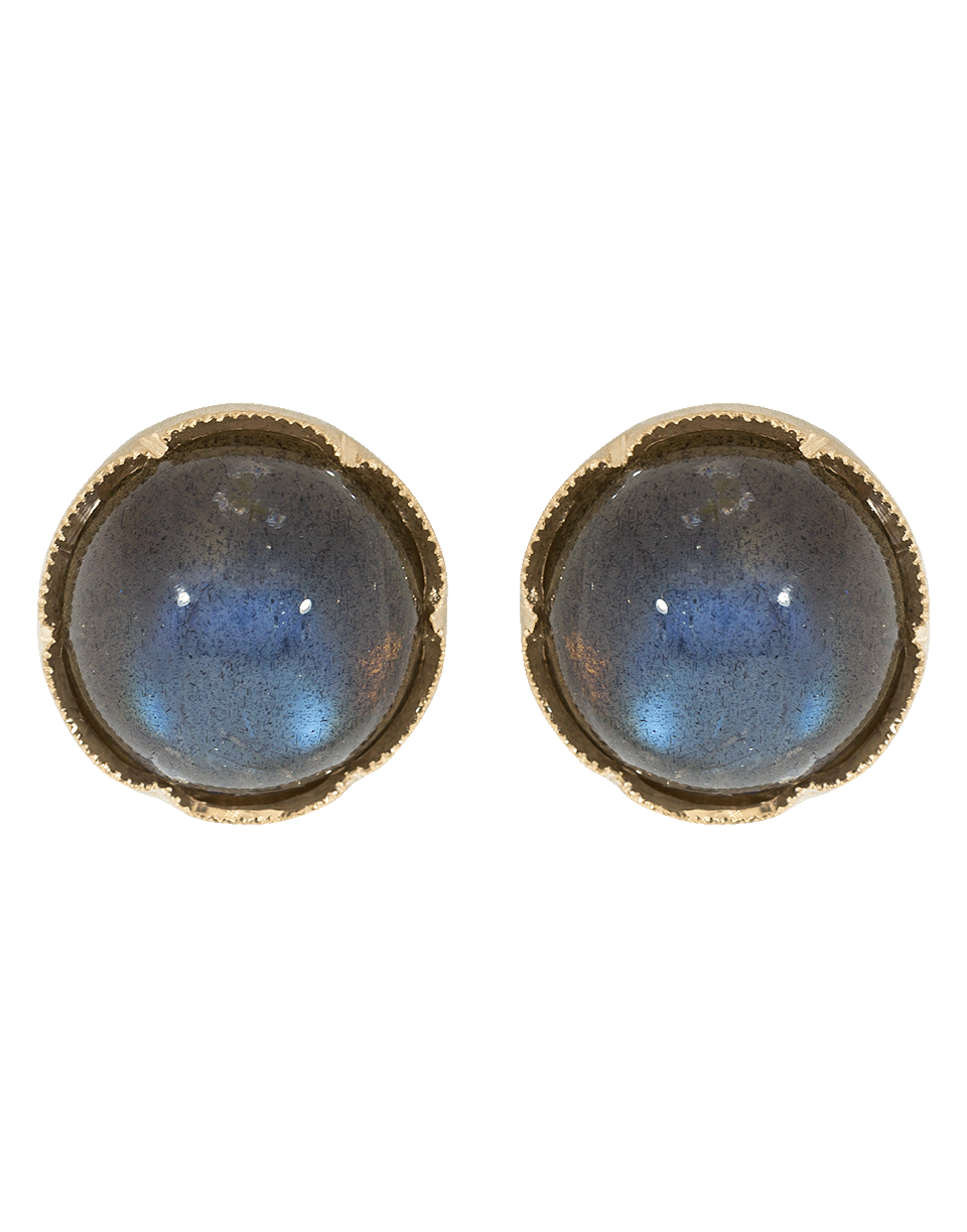 Irene Neuwirth stud earrings with cabachon labradorite stones. 11mm and push back closures.