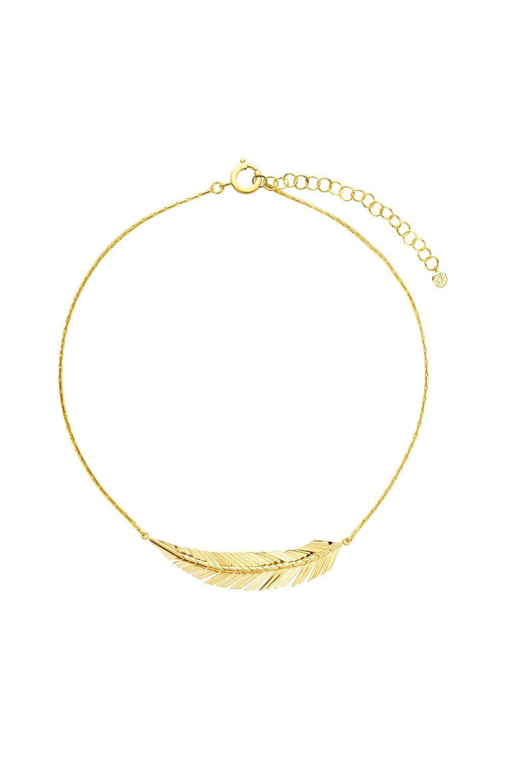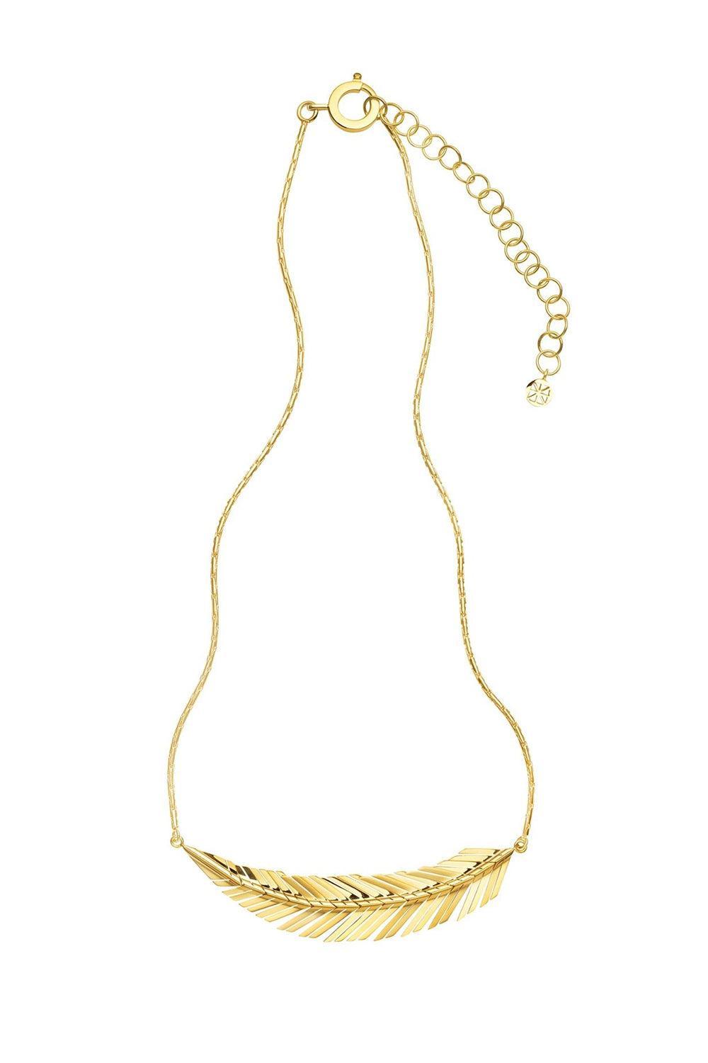 Cadar medium feather necklace in yellow gold.