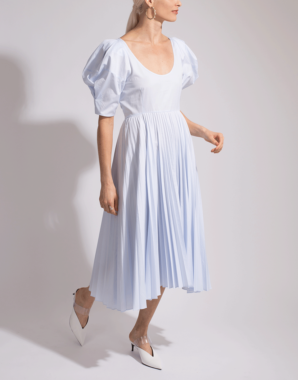 Slim Fitting Bodice With Full Pleated Skirt And Calf Length Cut