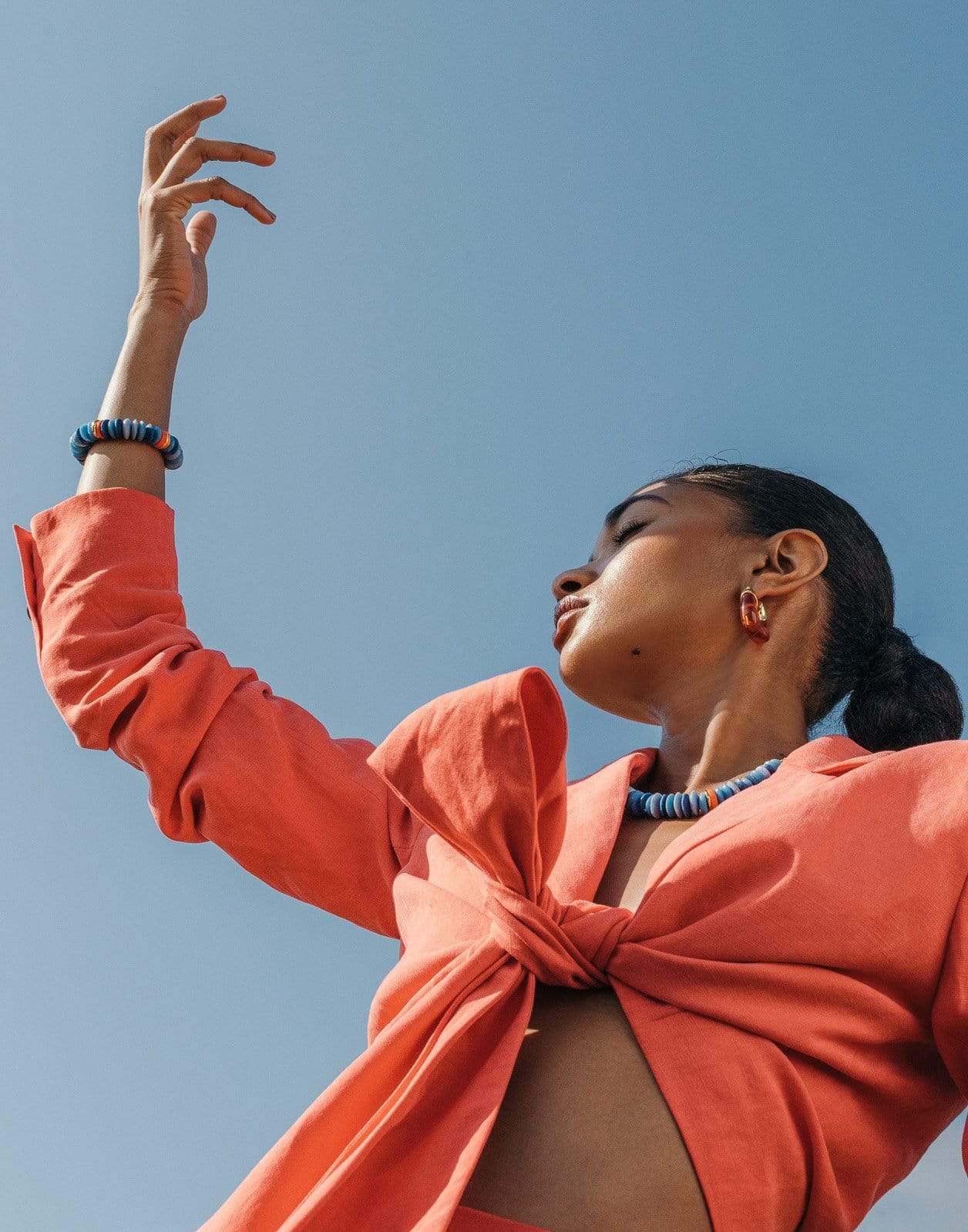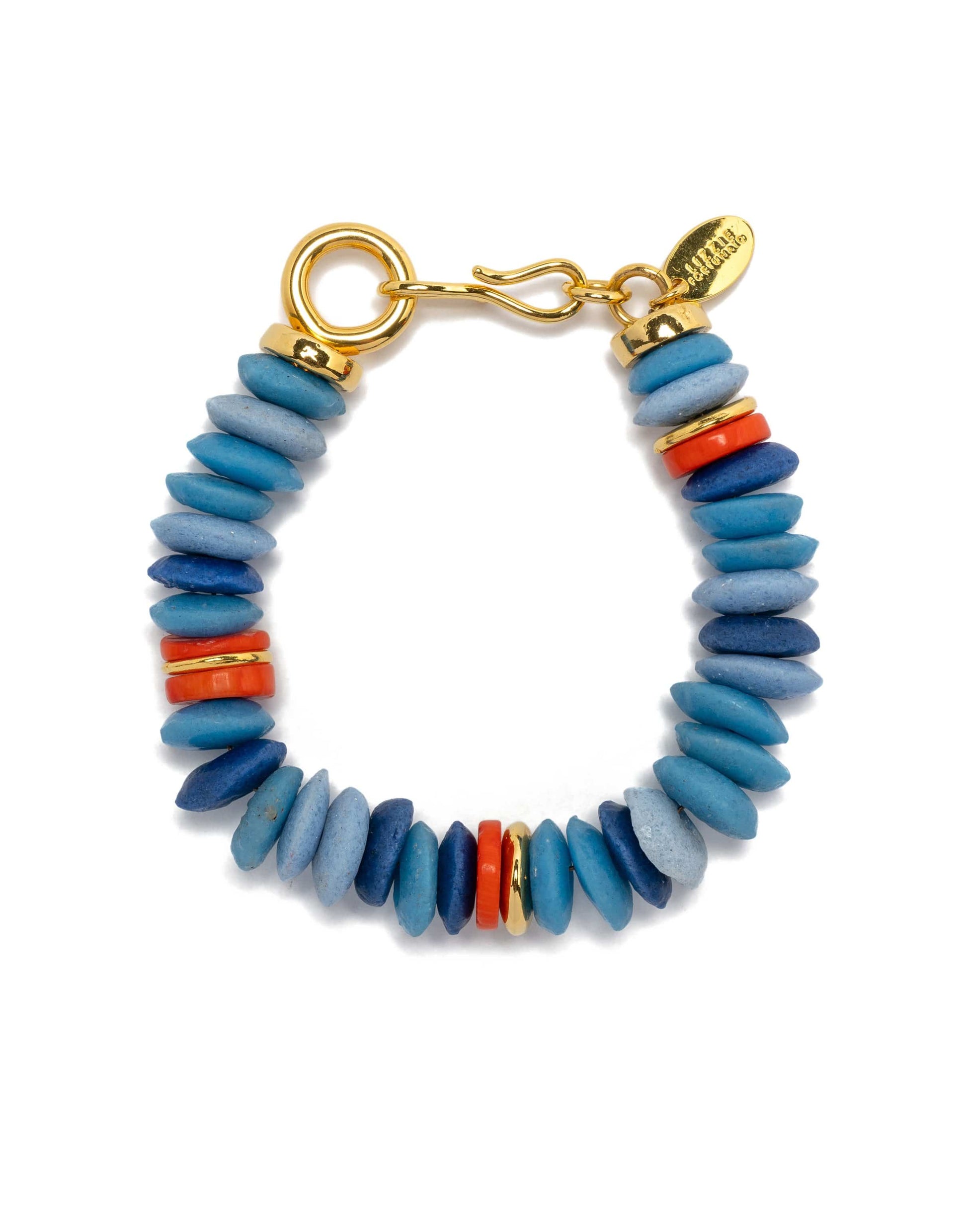 Lizzie Fortunato candy bracelet in denim. More arm candy, please. Add this blue-hued recycled glass, gold-plate, and bone beaded bracelet to your stack for a style as easy as your favorite pair of jeans.