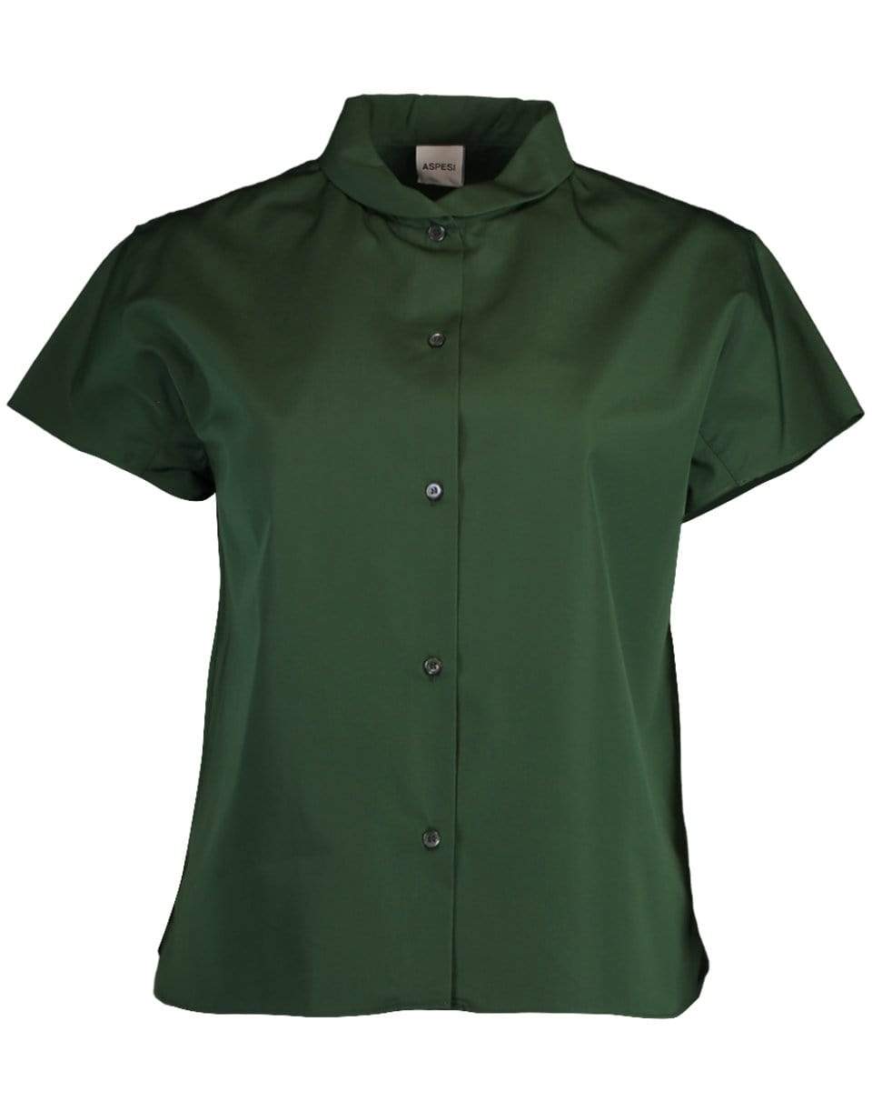 Aspesi poplin cap sleeve button up shirt with a Peter Pan collar, and a regular fit.