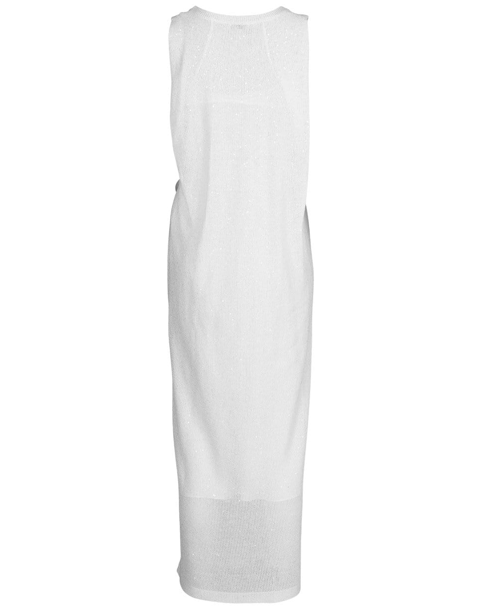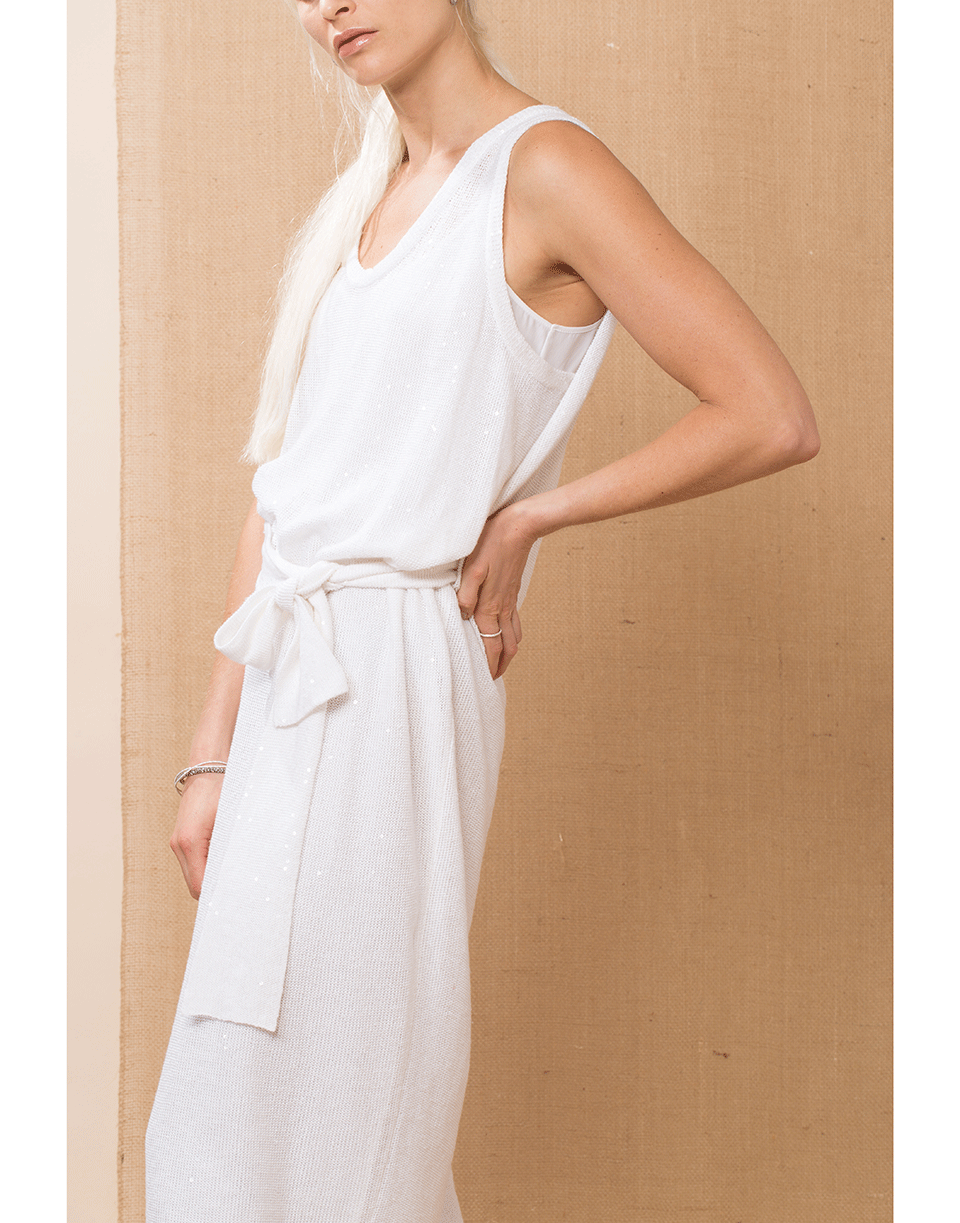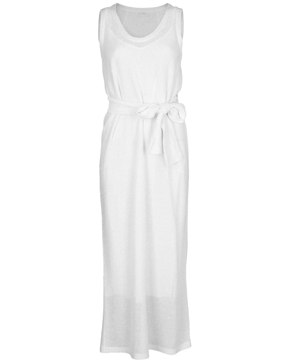 Brunello Cucinelli sleeveless V-neck paillette maxi dress with a cape back, waist belt, scoop neck, and a full length.