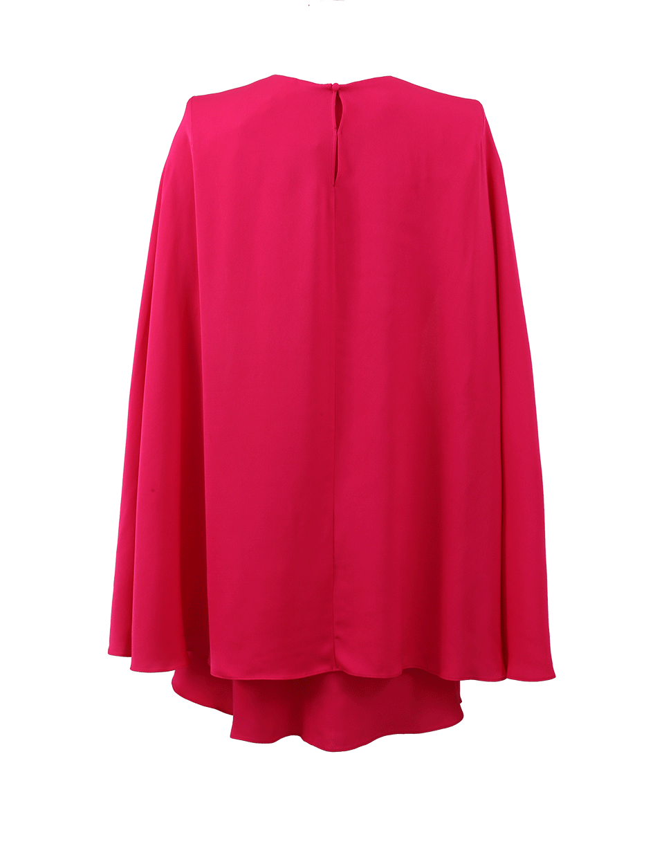 Crew Neckline With Zippered Keyhole And Two Button Closure, Cape Sleeves