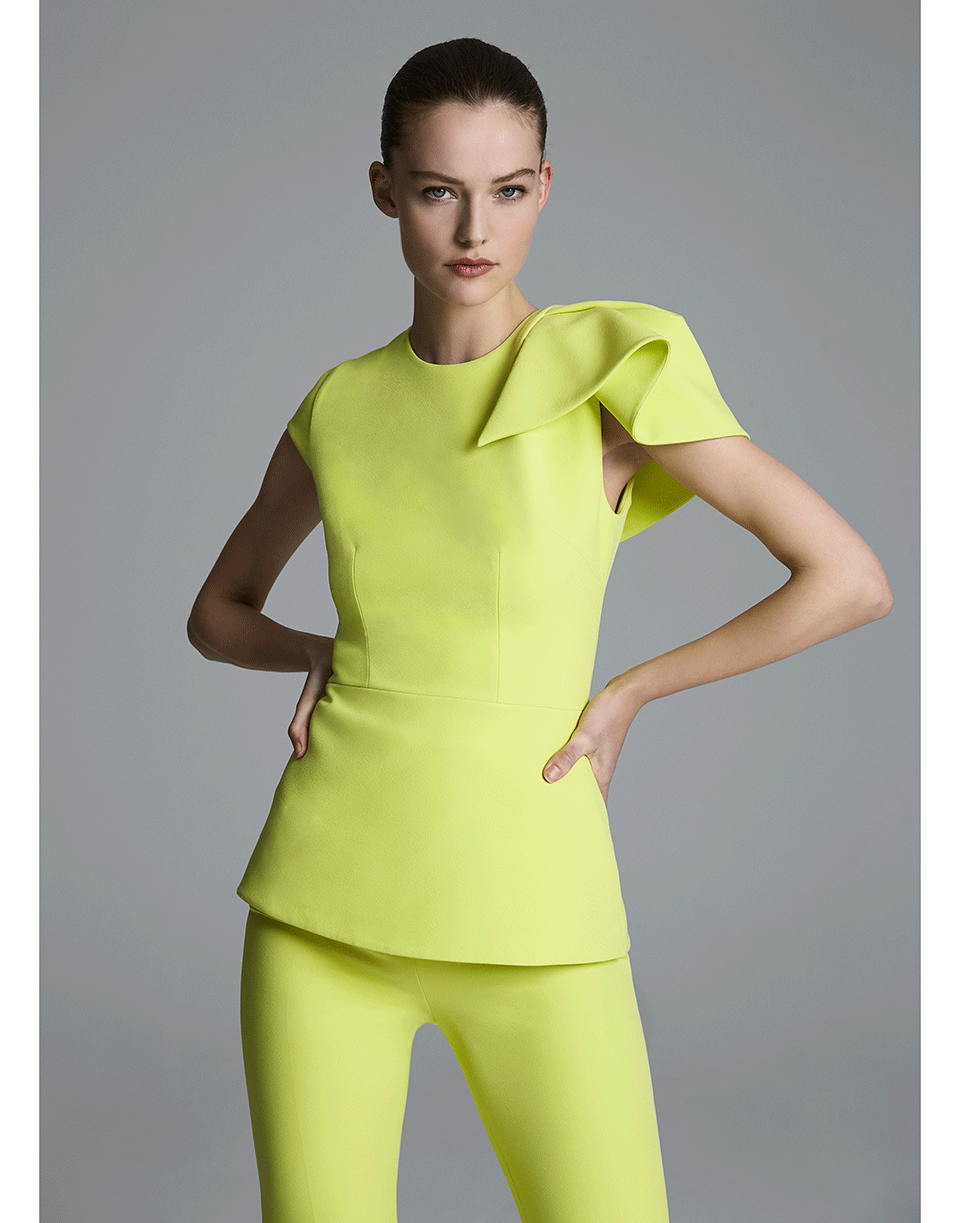 This bright Carlotta top by Safiyaa features a flattering slim fit with delicate cap sleeves, a round neckline, and a concealed zip closure along the back.