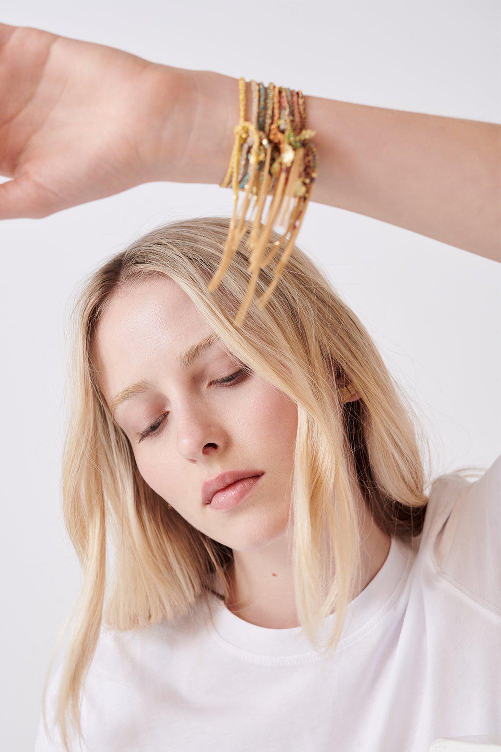Carolina Bucci lucky celebration charm bracelet in yellow gold.