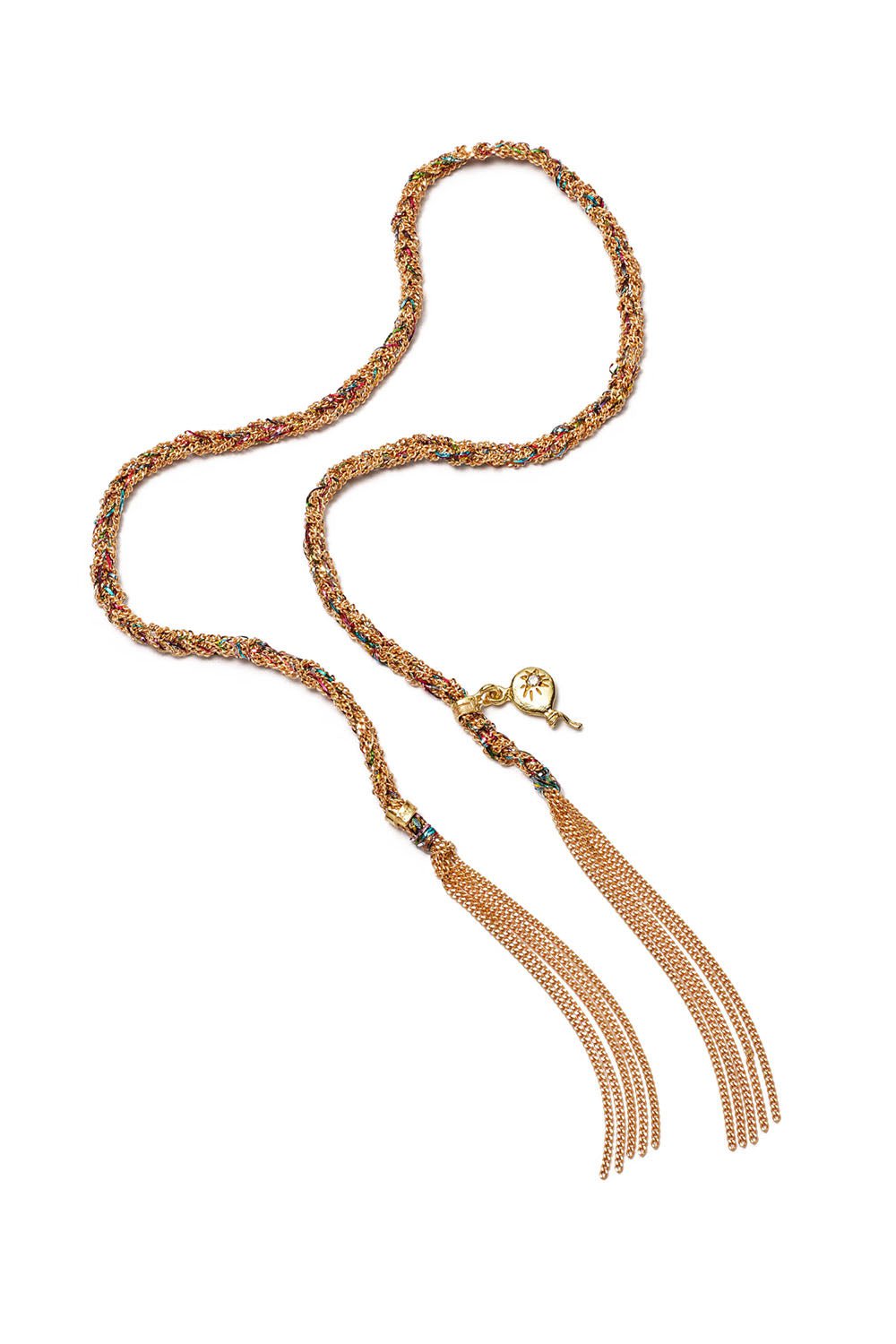 This Lucky bracelet features an 18k Gold diamond-cut chain, hand braided with metallic Rainbow silk and finished with a balloon charm with a white diamond, symbolising Celebration.