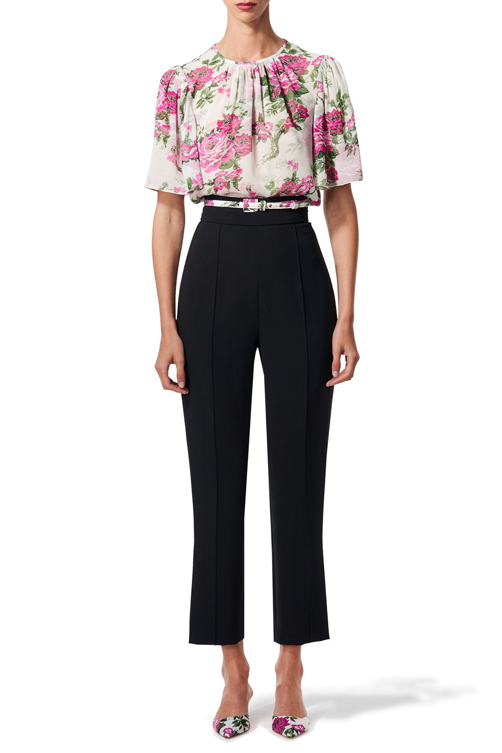 Carolina Herrera short sleeve floral top in white multi.