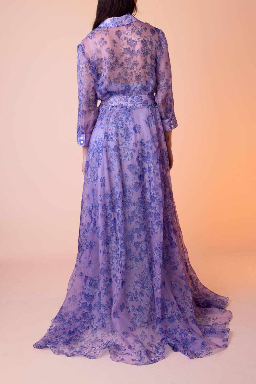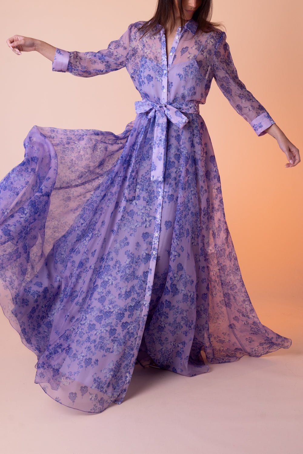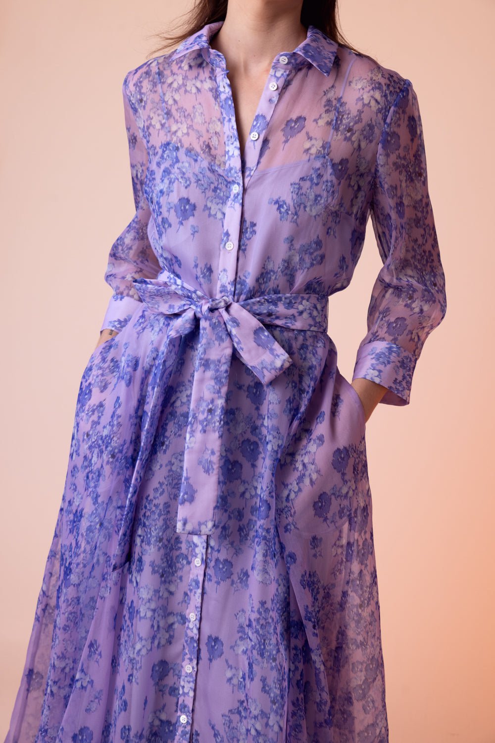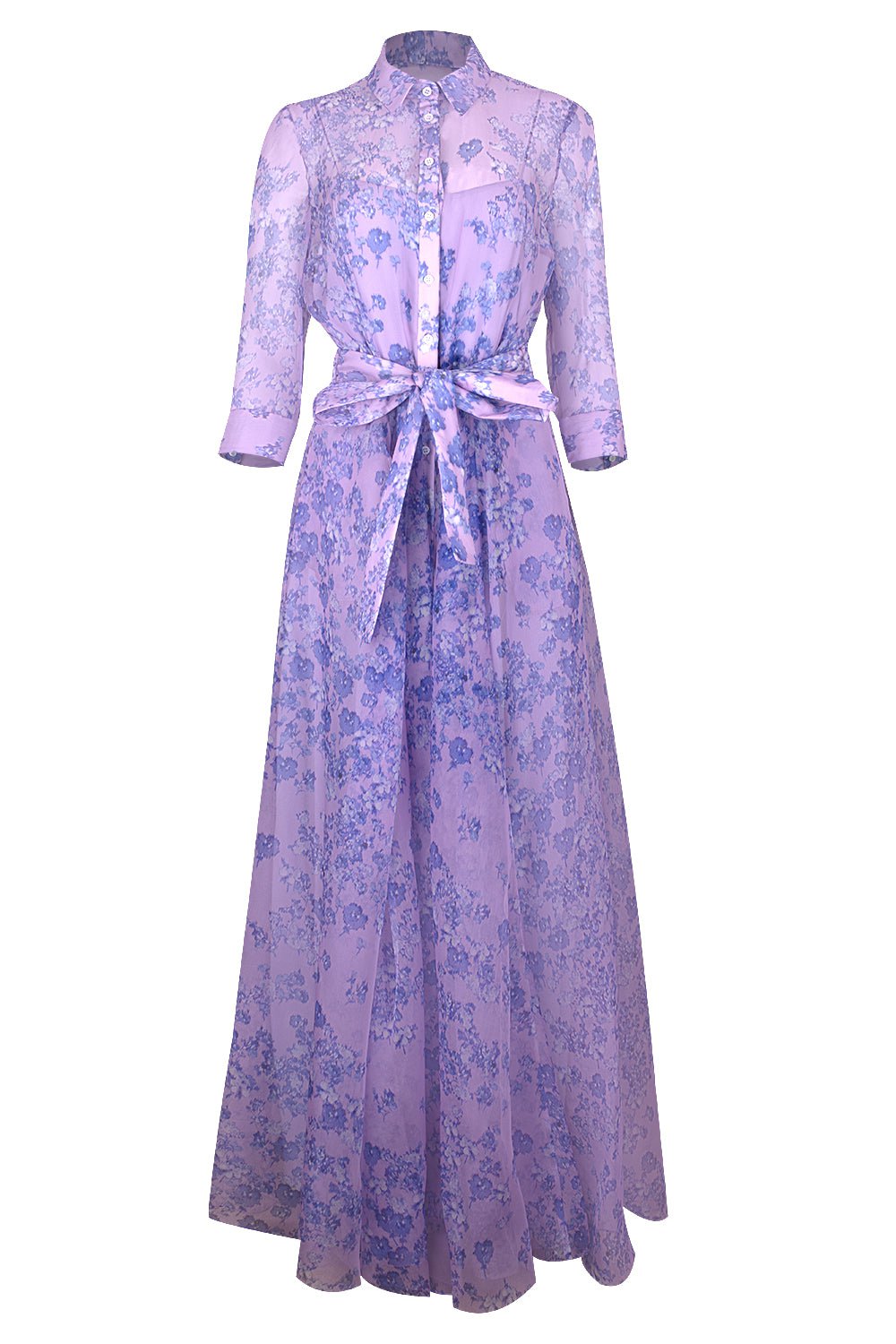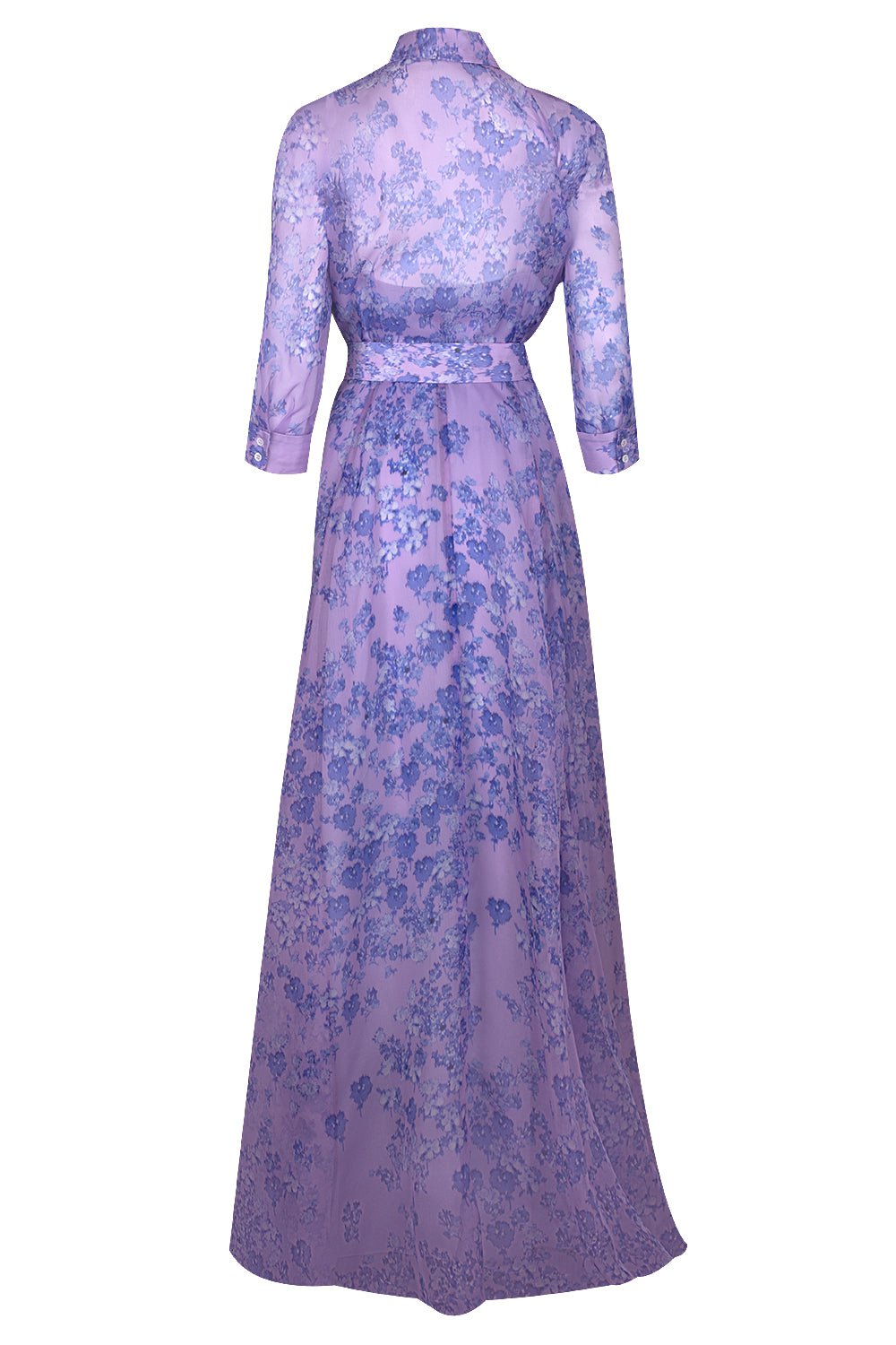Carolina Herrera three quarter sleeve trench gown in lilac.
