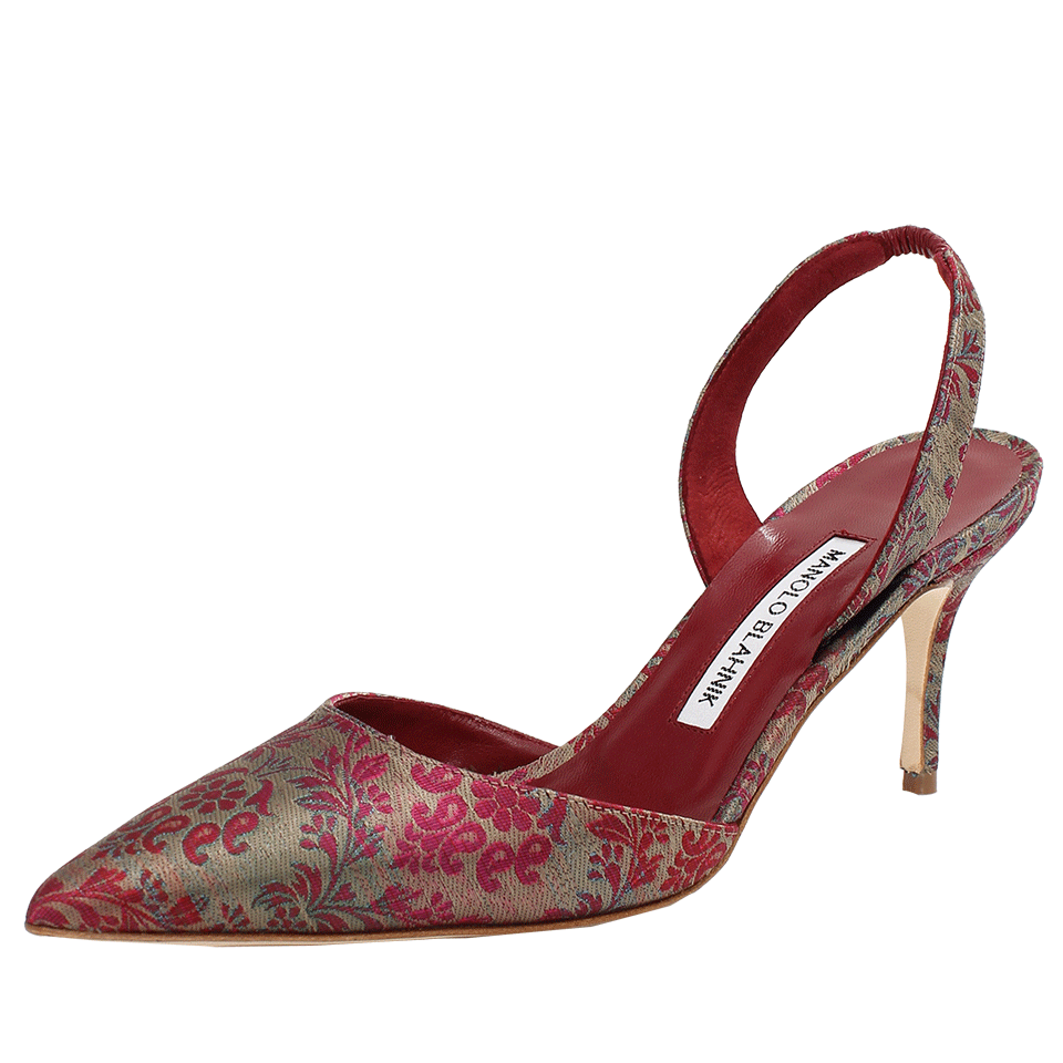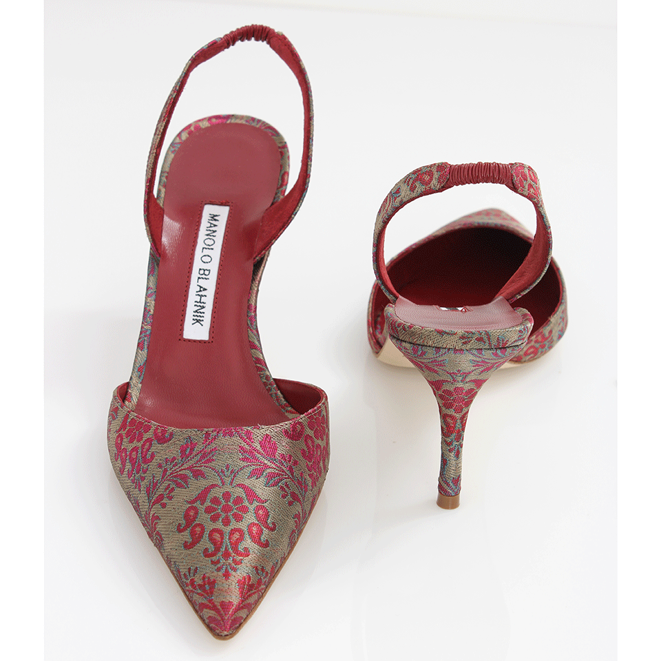 Brocade Upper With Suede Sole And Leather Insole, Trim, And Lining