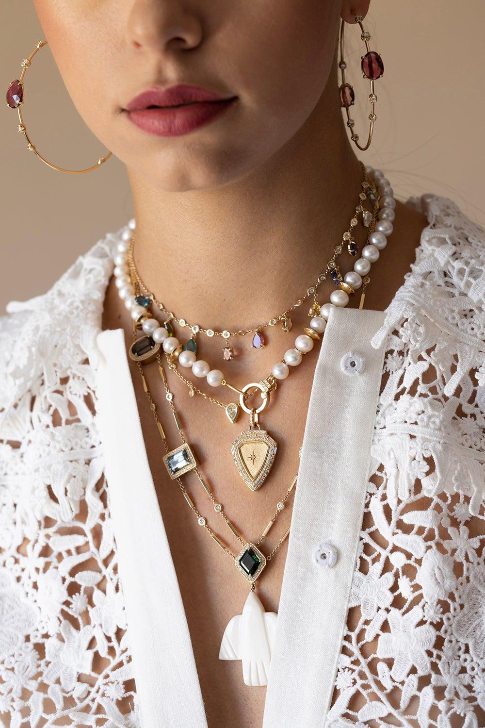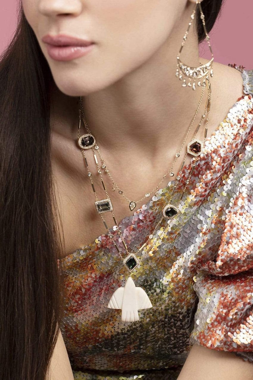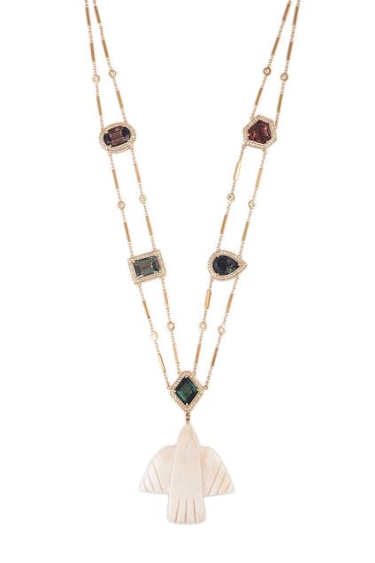 Jacquie Aiche pave diamond and tourmaline necklace with carved thunderbird pendant.