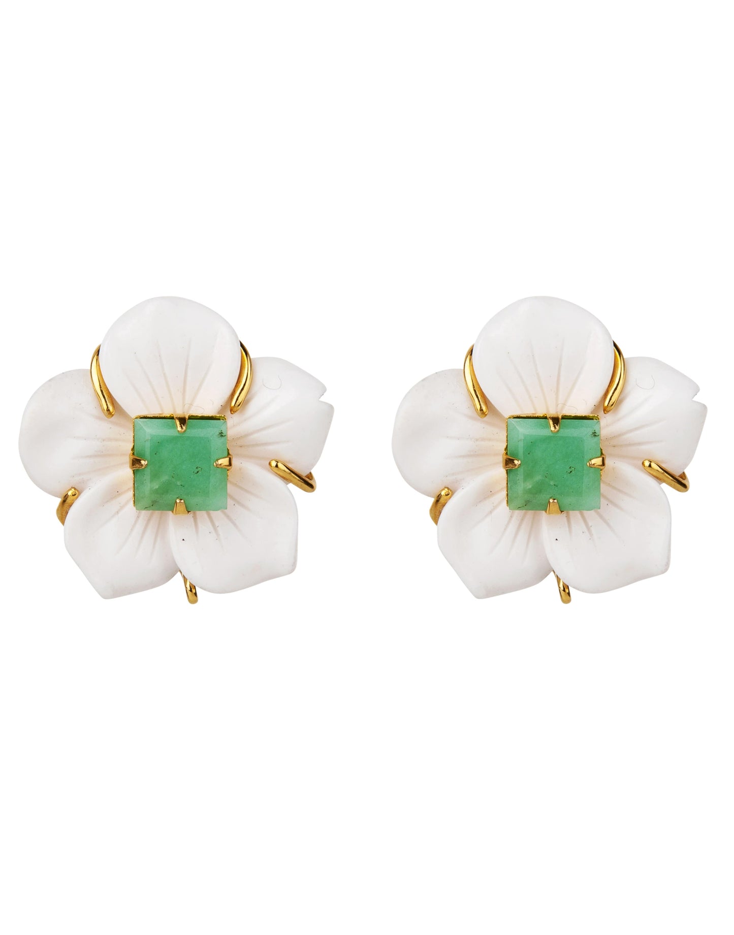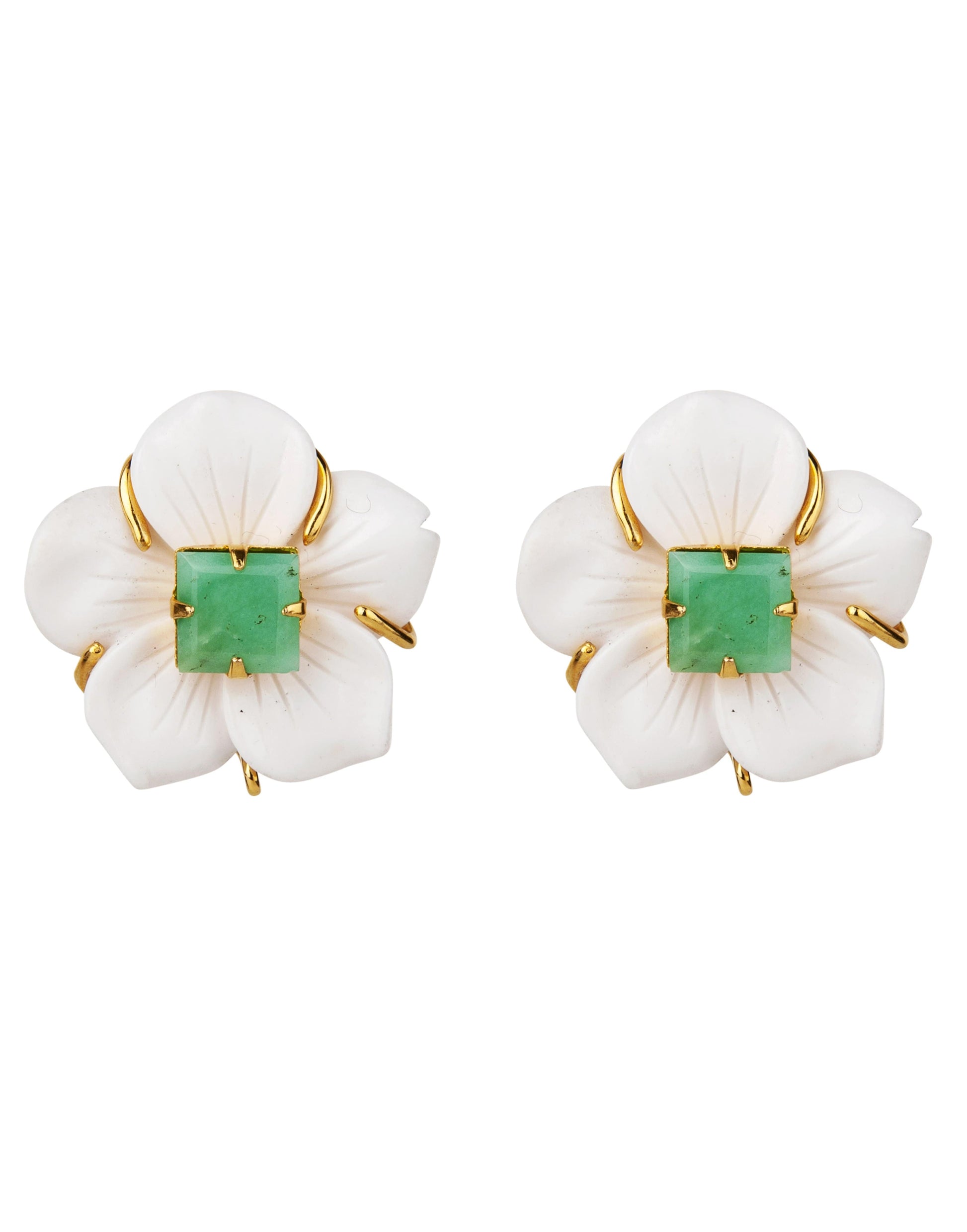 Bounkit Carved White Agate & Chrysoprase Flower Earrings