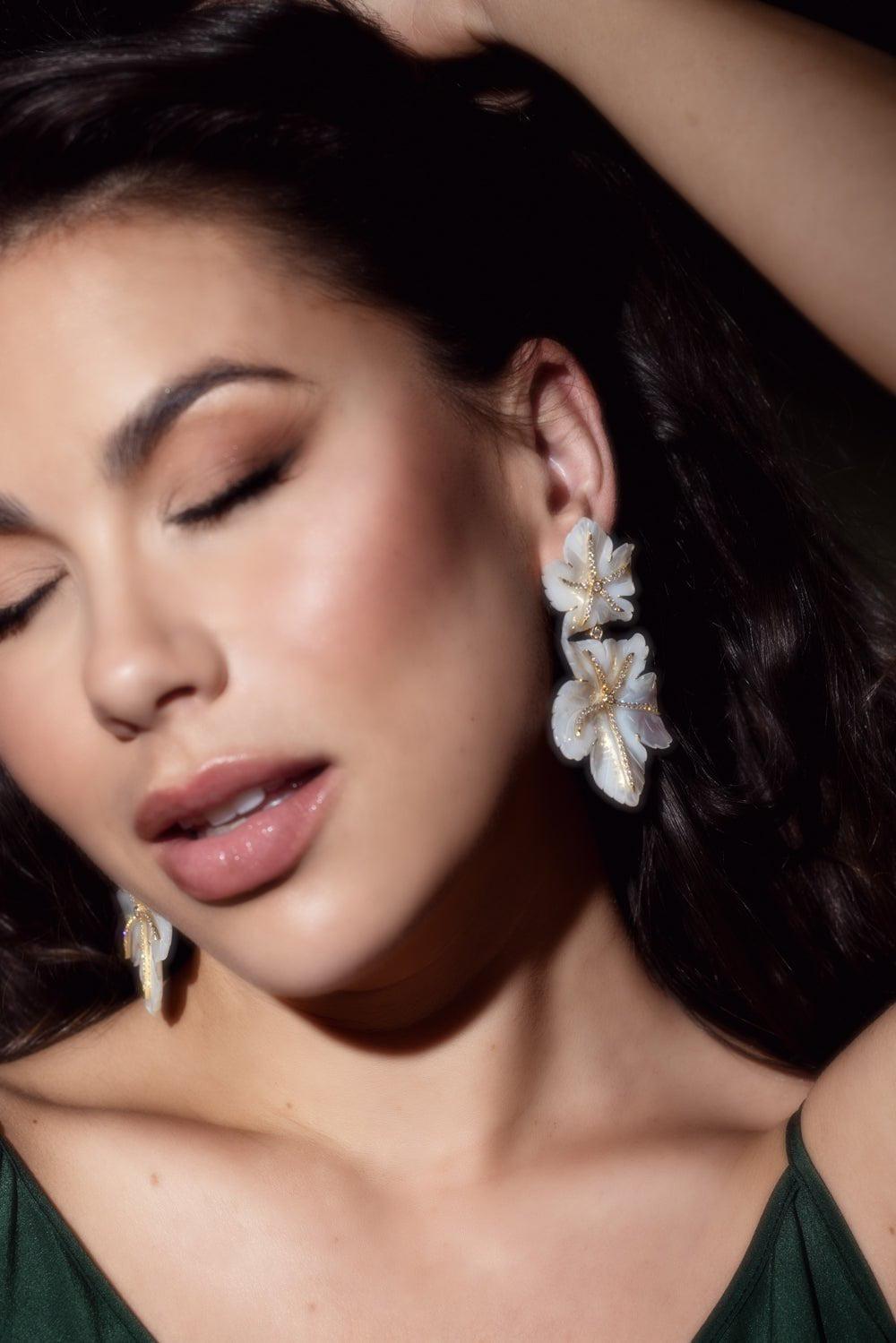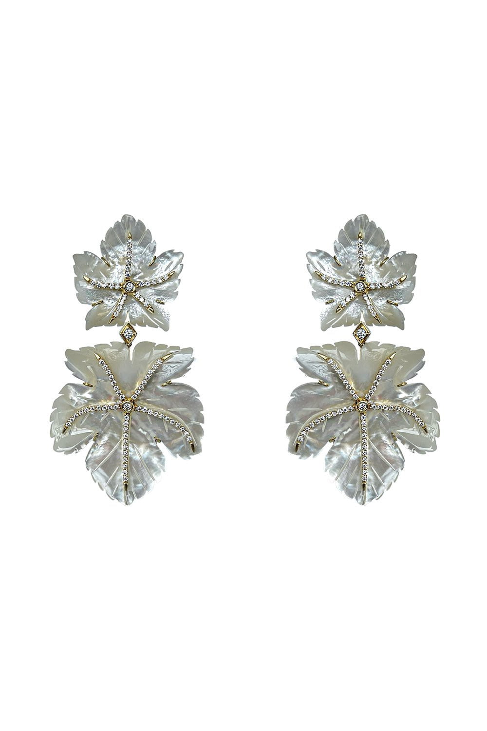 Casa Castro double leaf pearl mother nature earrings earrings in yellow gold.