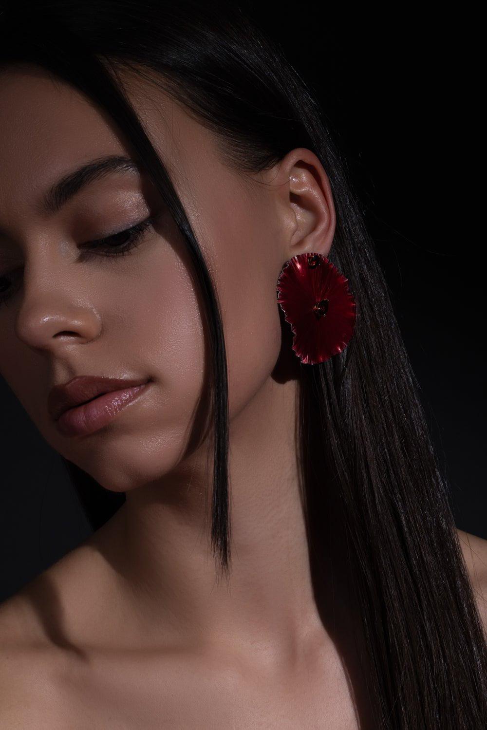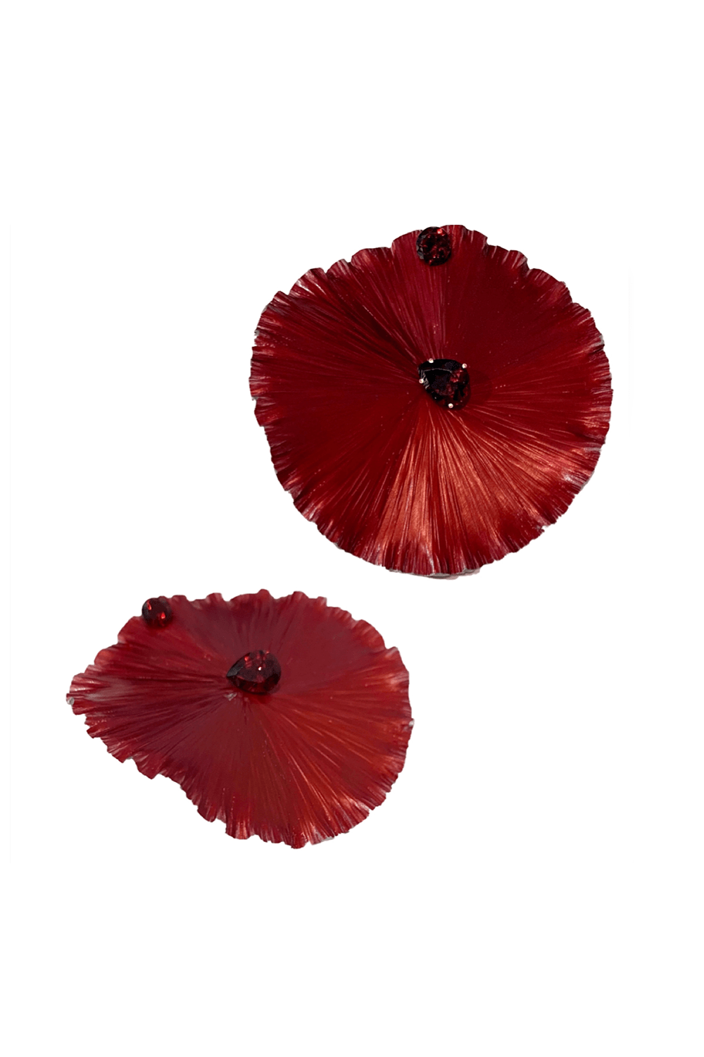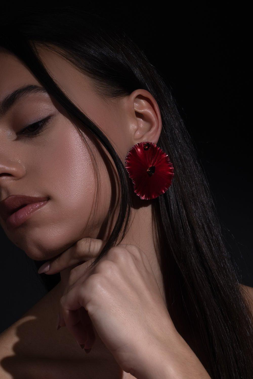 Casa Castrro large garnet mother nature earrings in yellow gold.