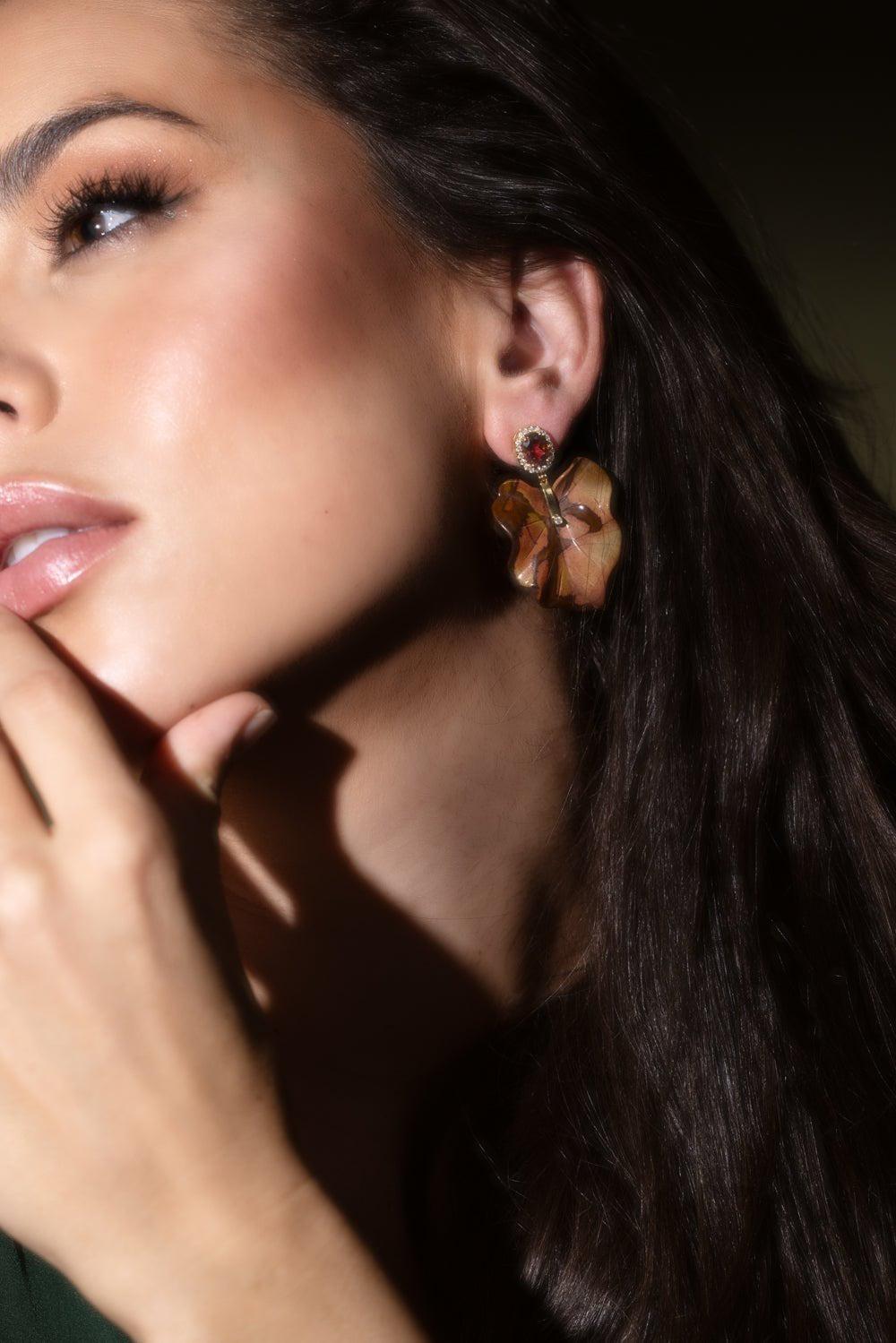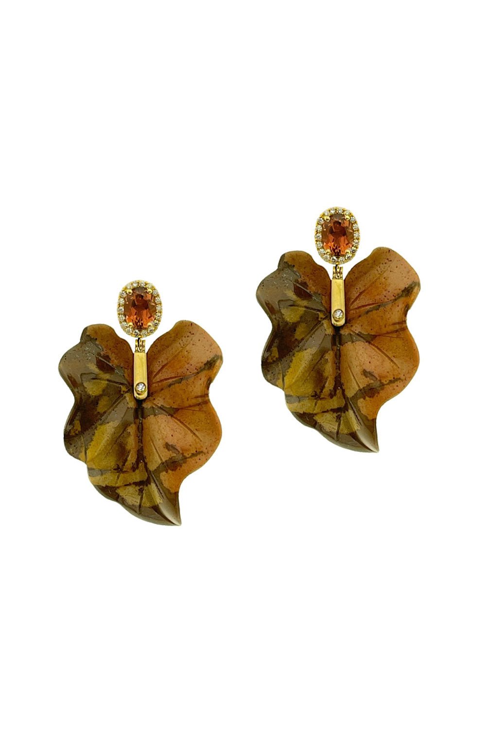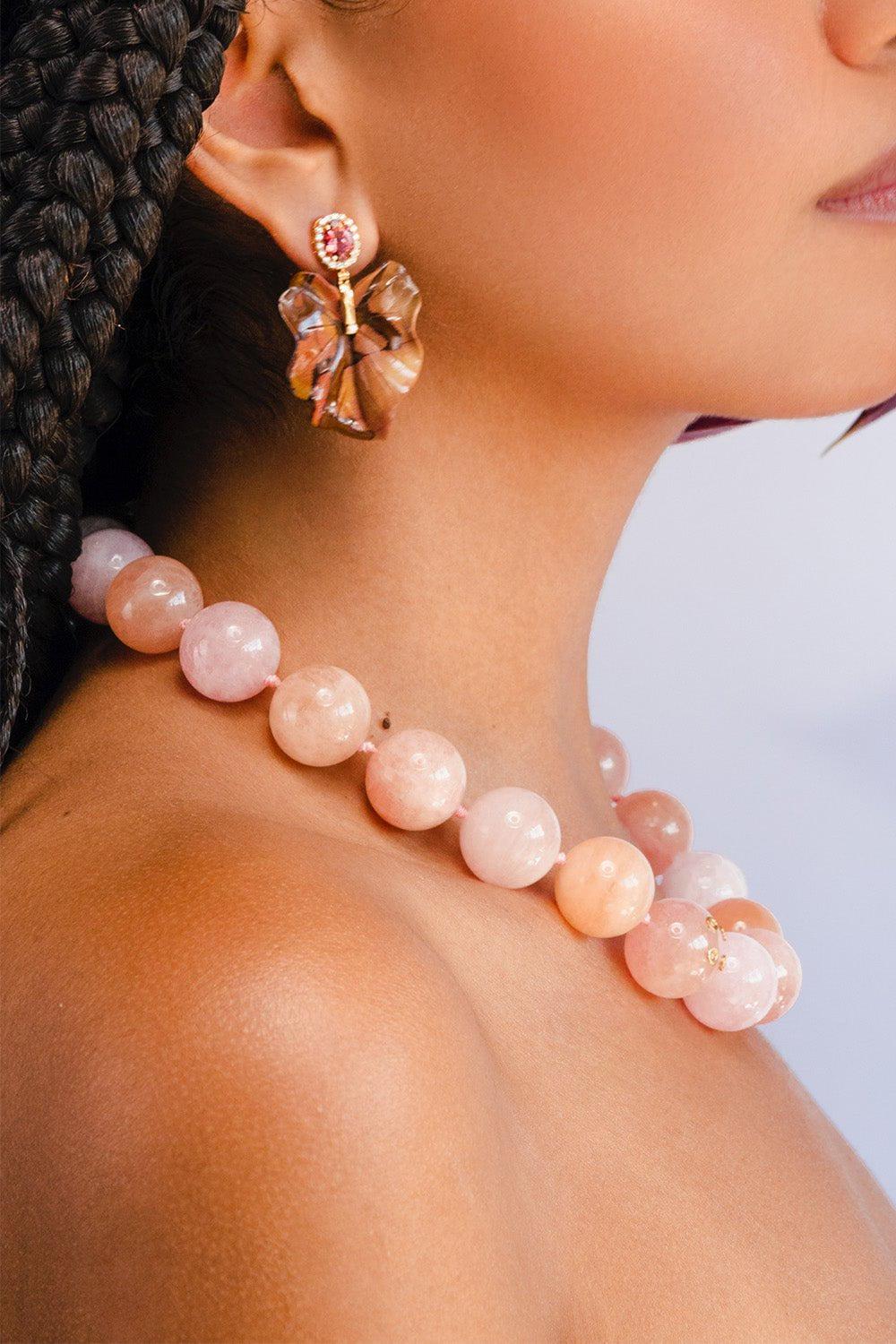Casa Castro pink tourmaline jasper mother nature earrings in yellow gold.