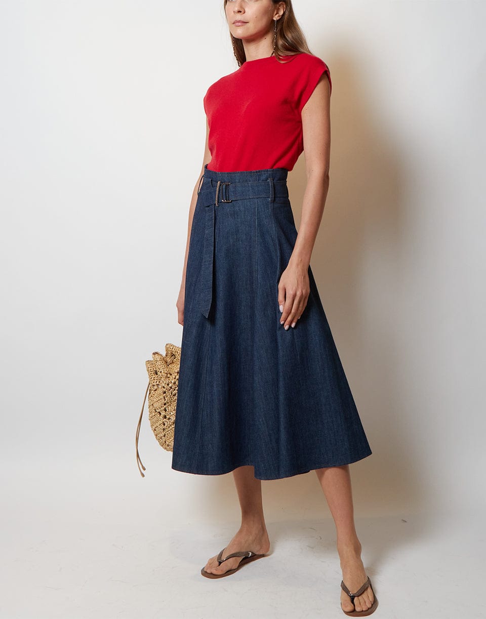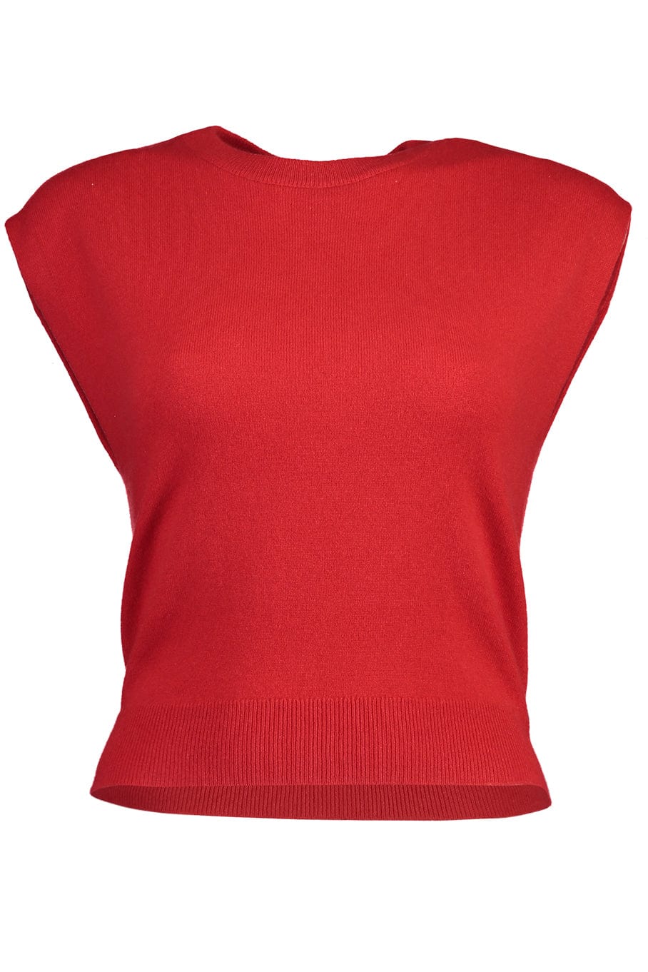 Brunello Cucinelli cashmere cap sleeve pullover in red chili.