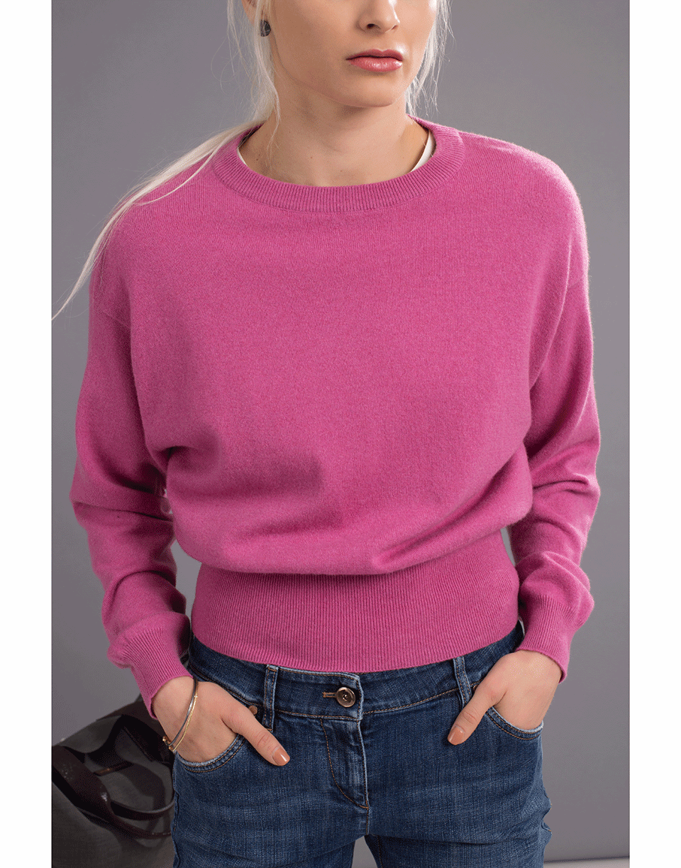 This bright pink cashmere knit sweater by Brunello Cucinelli features a crew neckline, long sleeves, ribbed details, and a classic fit with a pull over style.