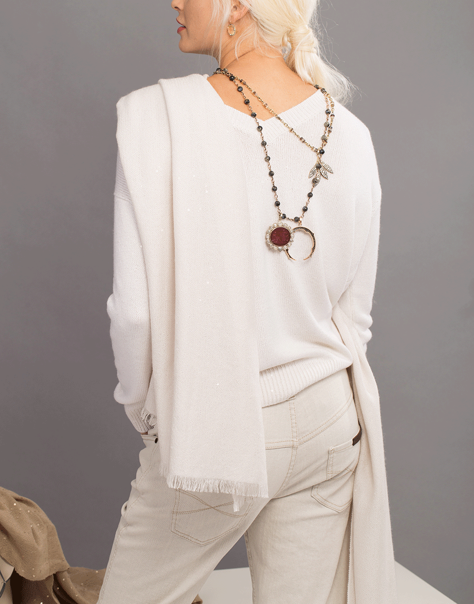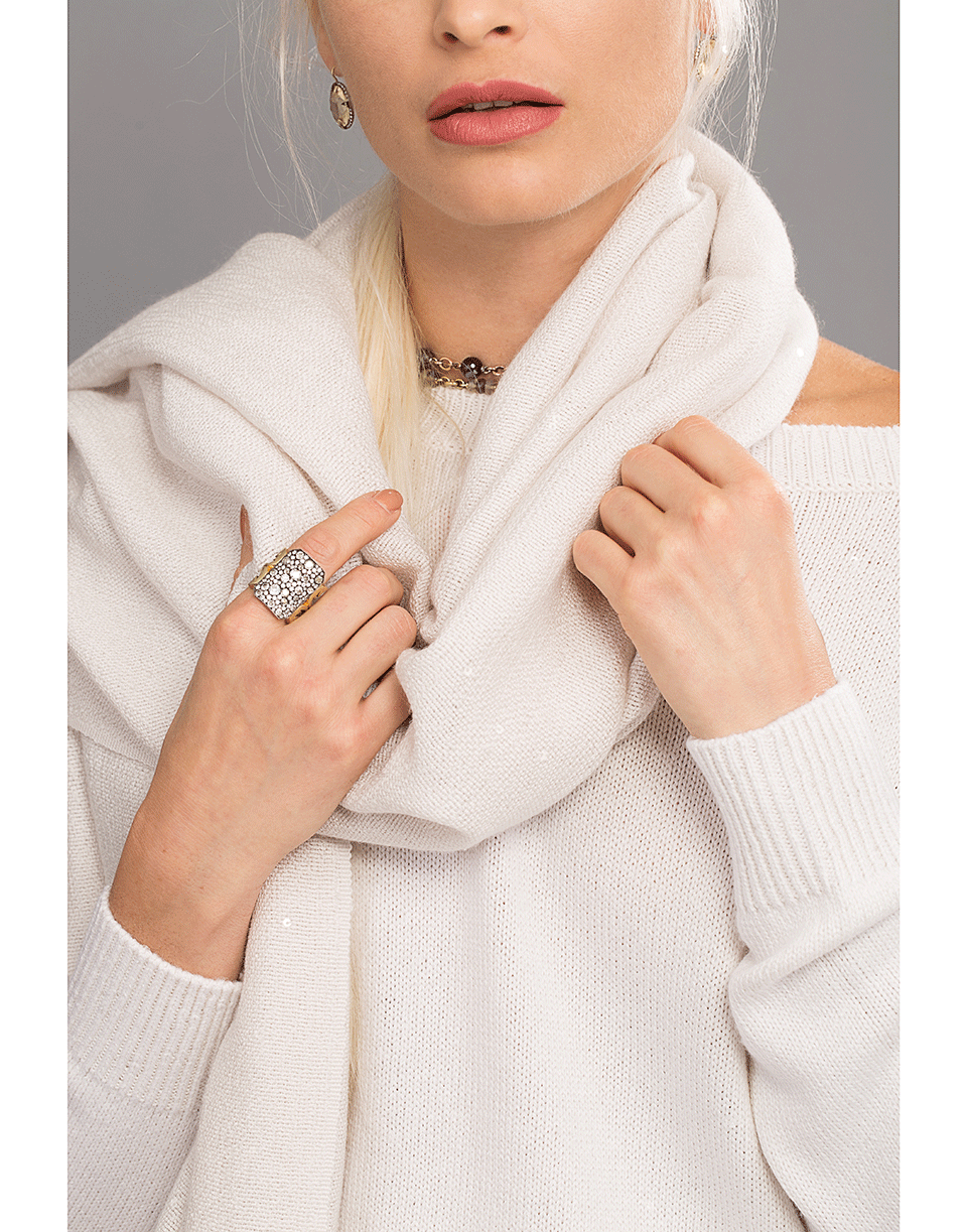 This Brunello Cucinelli scarf offers just enough comfort and sophistication, featuring a hint of sparkle with scattered paillettes on a blend of soft luxurious cashmere and silk.