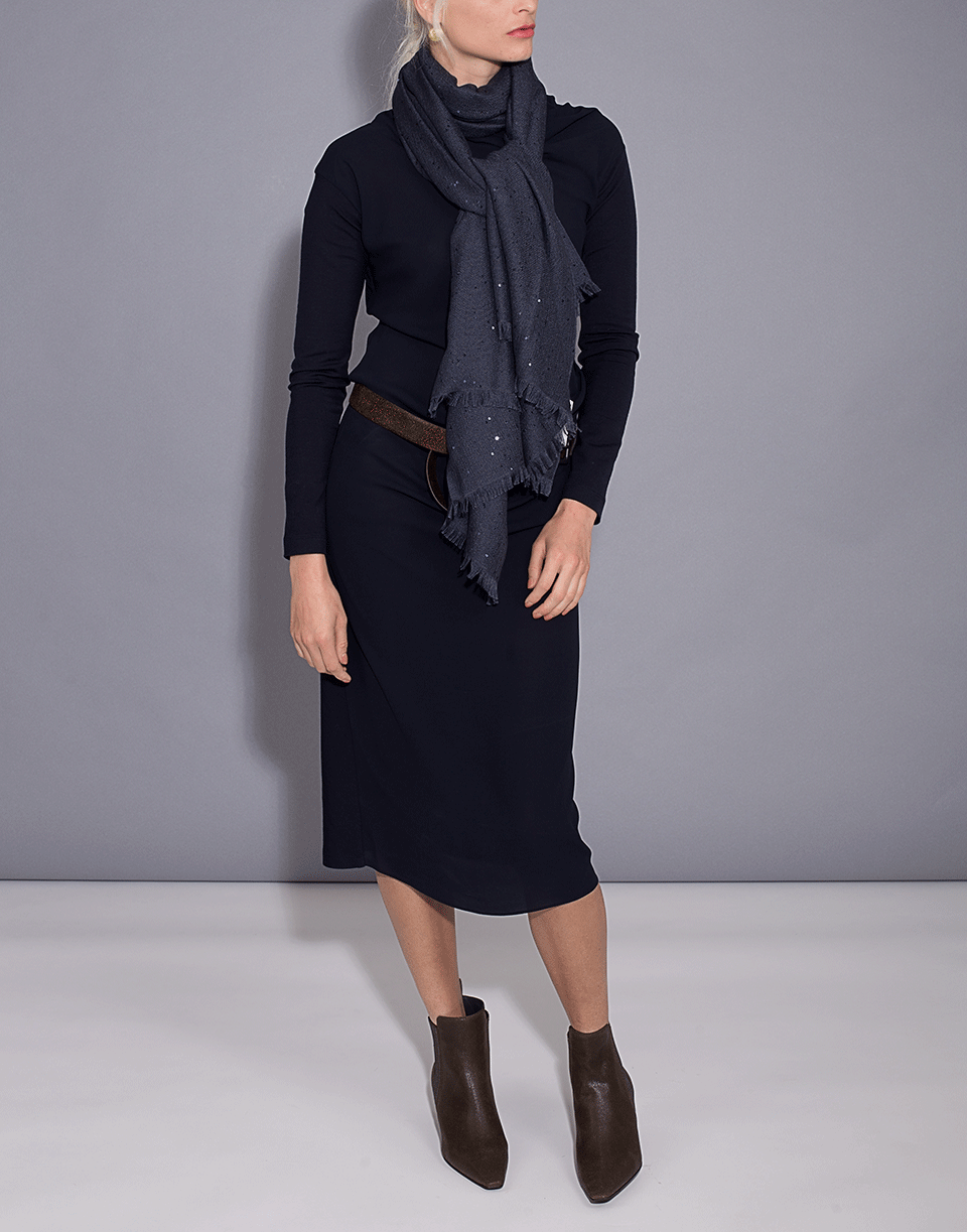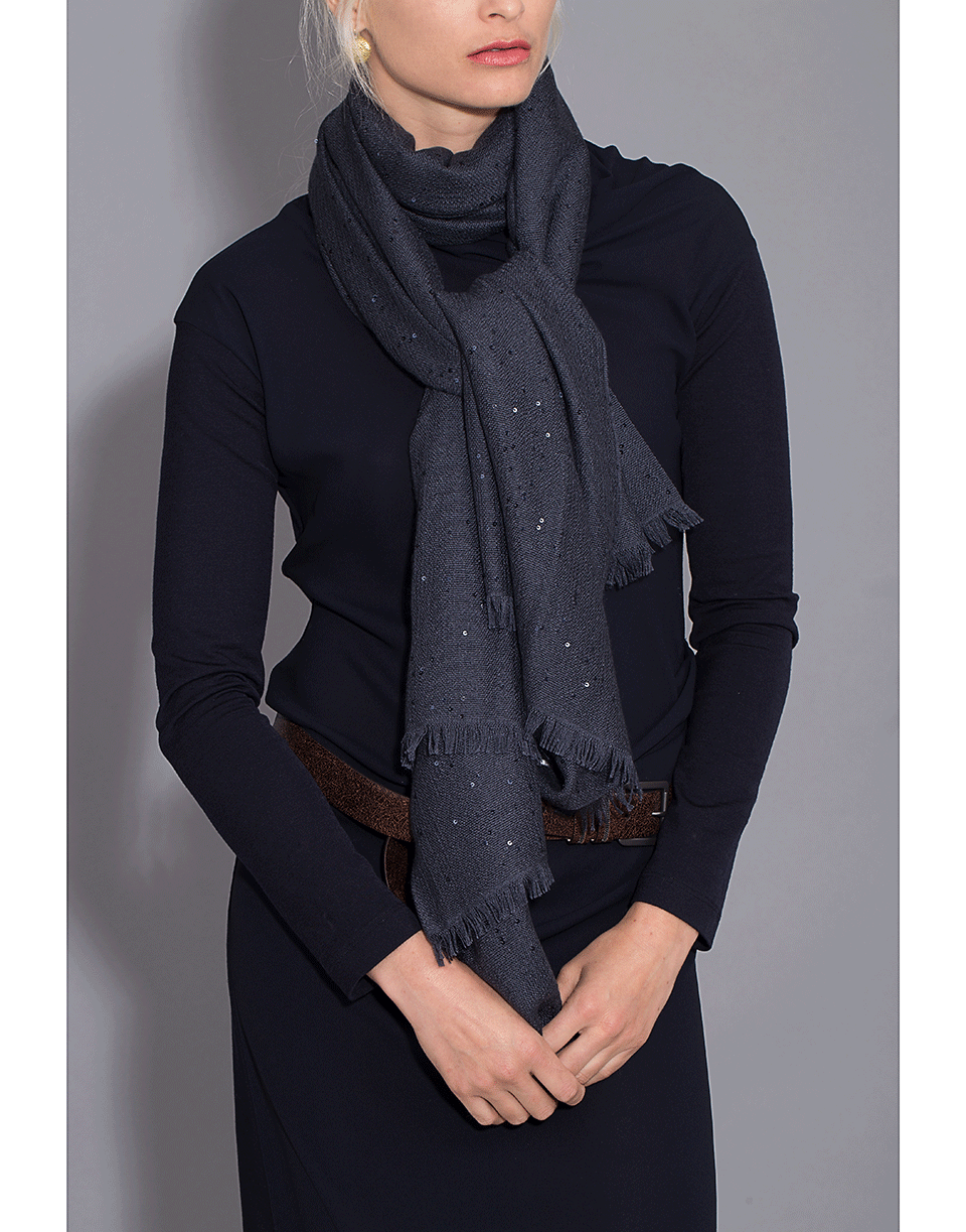 This Brunello Cucinelli scarf offers just enough comfort and sophistication, featuring a hint of sparkle with scattered paillettes on a blend of soft luxurious cashmere and silk.