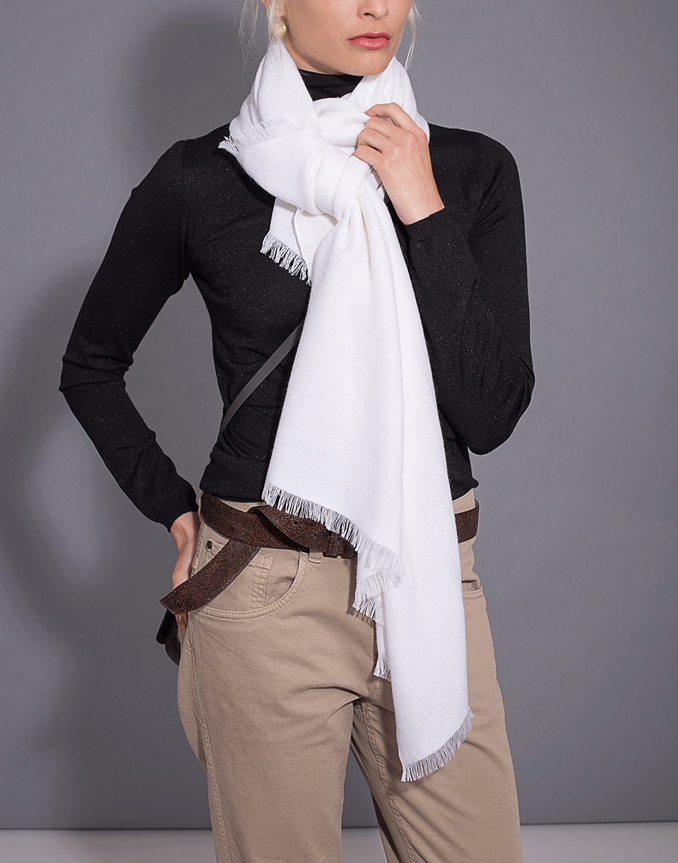 This Brunello Cucinelli cashmere blend scarf will keep you cozy no matter the temperature.