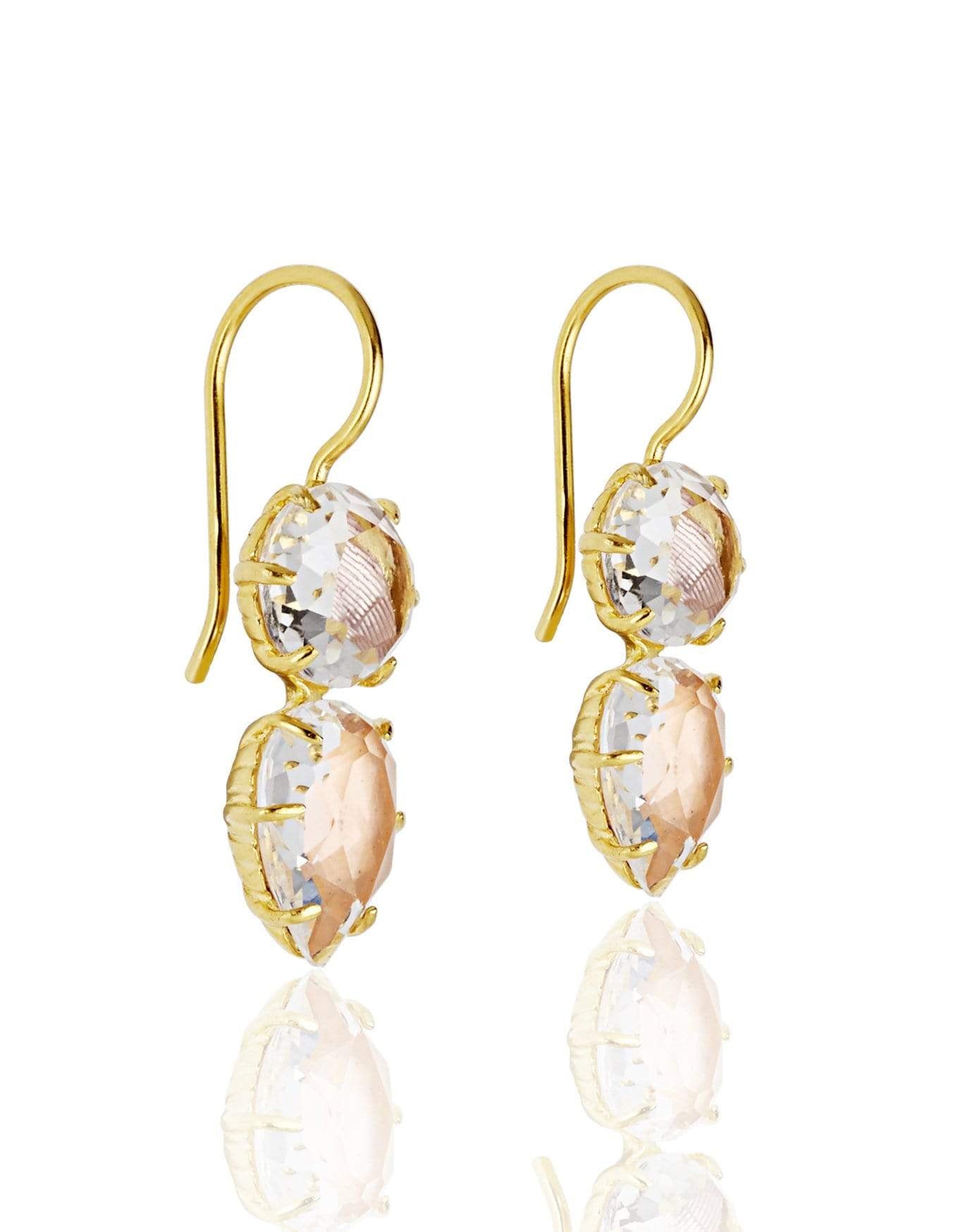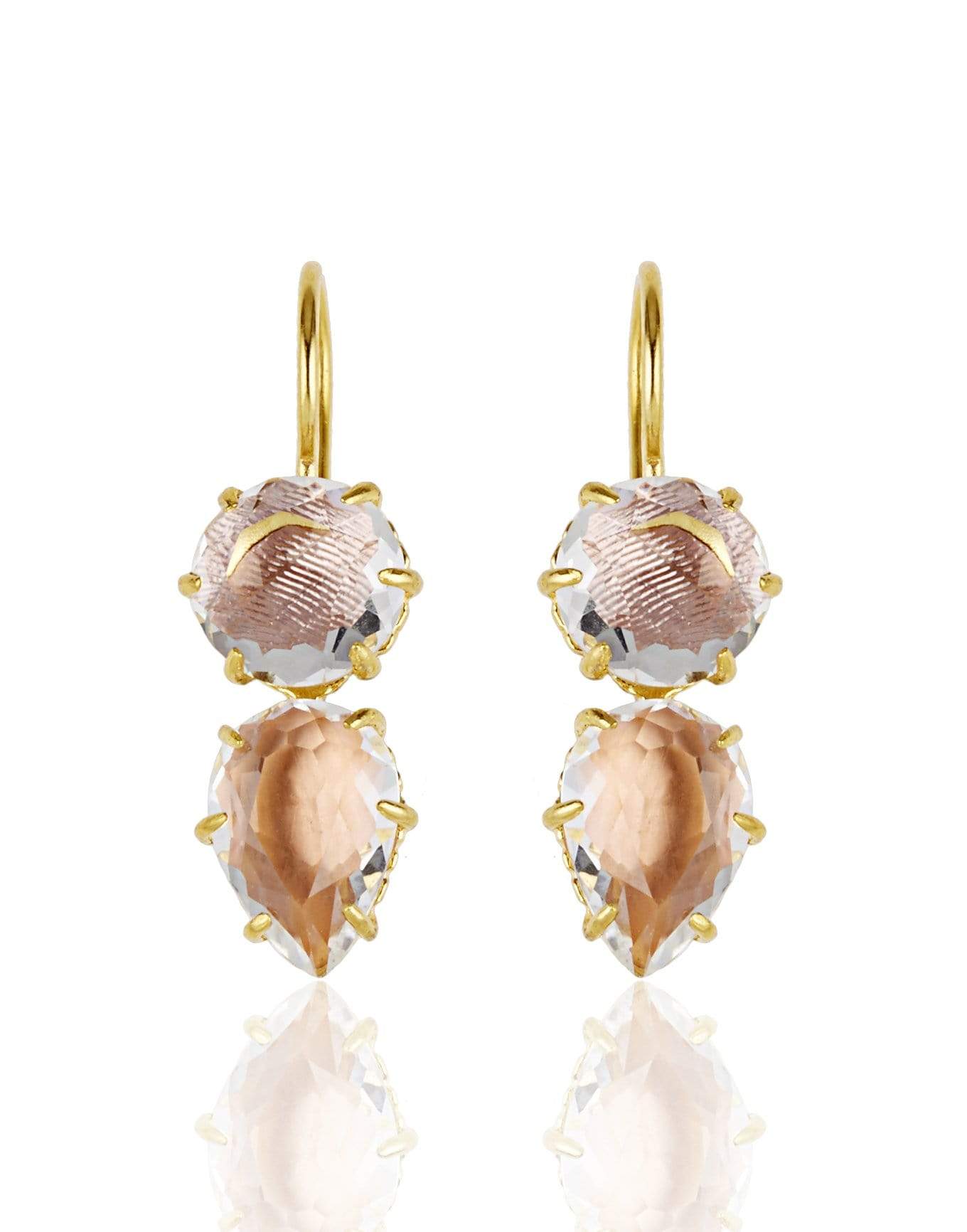 Larkspur & Hawk ballet and bellini Caterina round pear earrings. Sleek and streamlined, Caterina lends classic silhouettes a contemporary edge. This collection features a mix of stones with clean lines and graphic shapes, including baguette, trillion and pear-cut quartz, in airy settings with minimal metal. One of our most lightweight and delicately-scaled collections, Caterina’s purity allows foils, ranging from understated neutrals to rainbow brights, to truly shine.