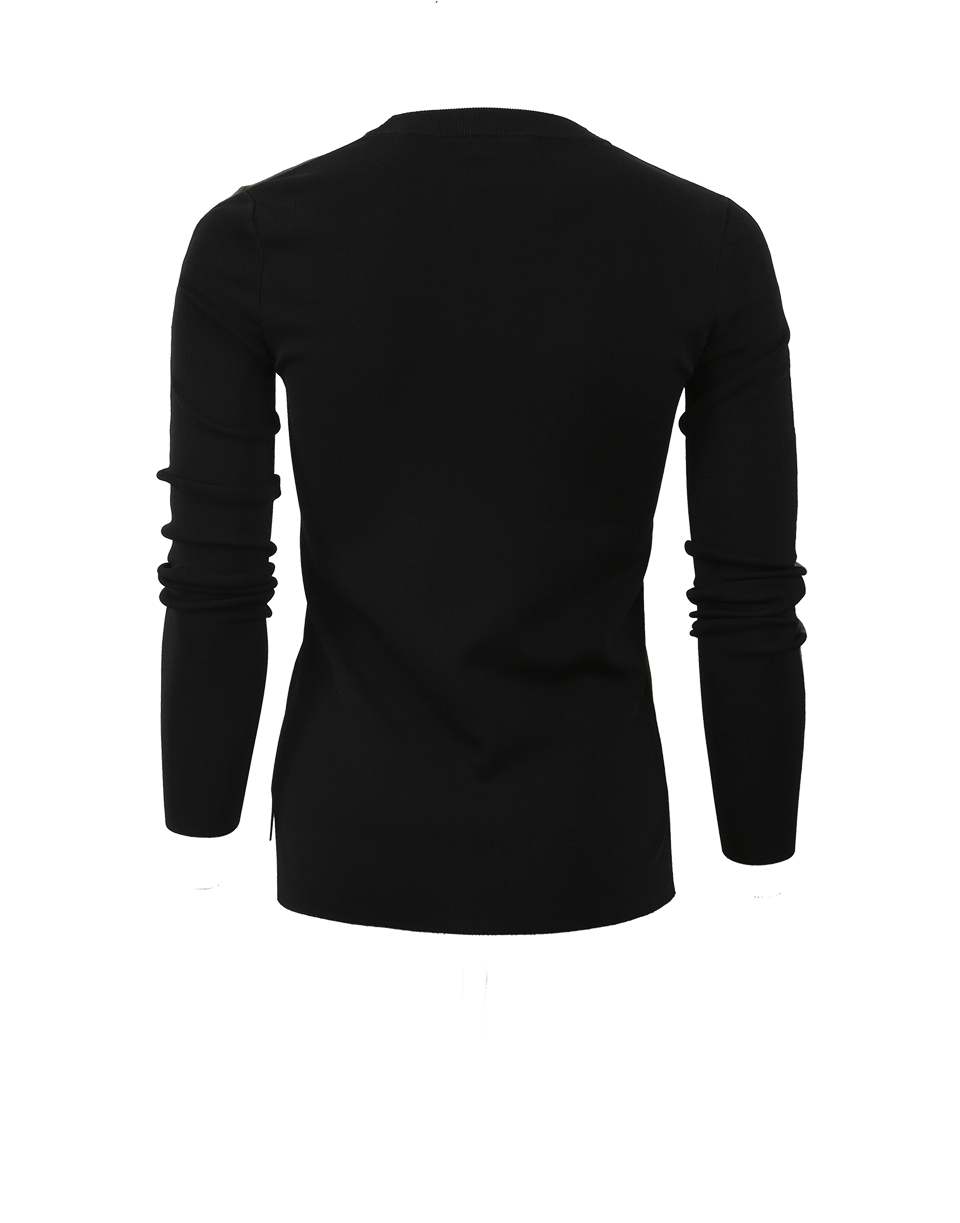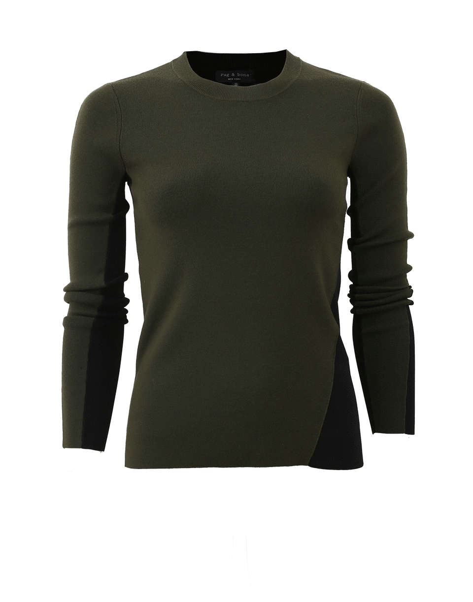 Ribbed Crew Neckline With Two Tone Long Sleeves