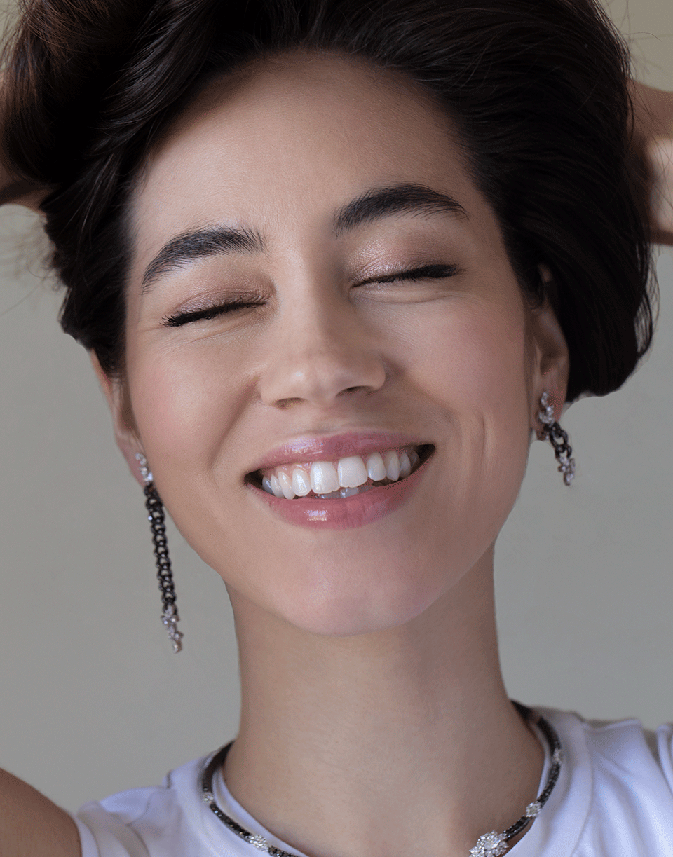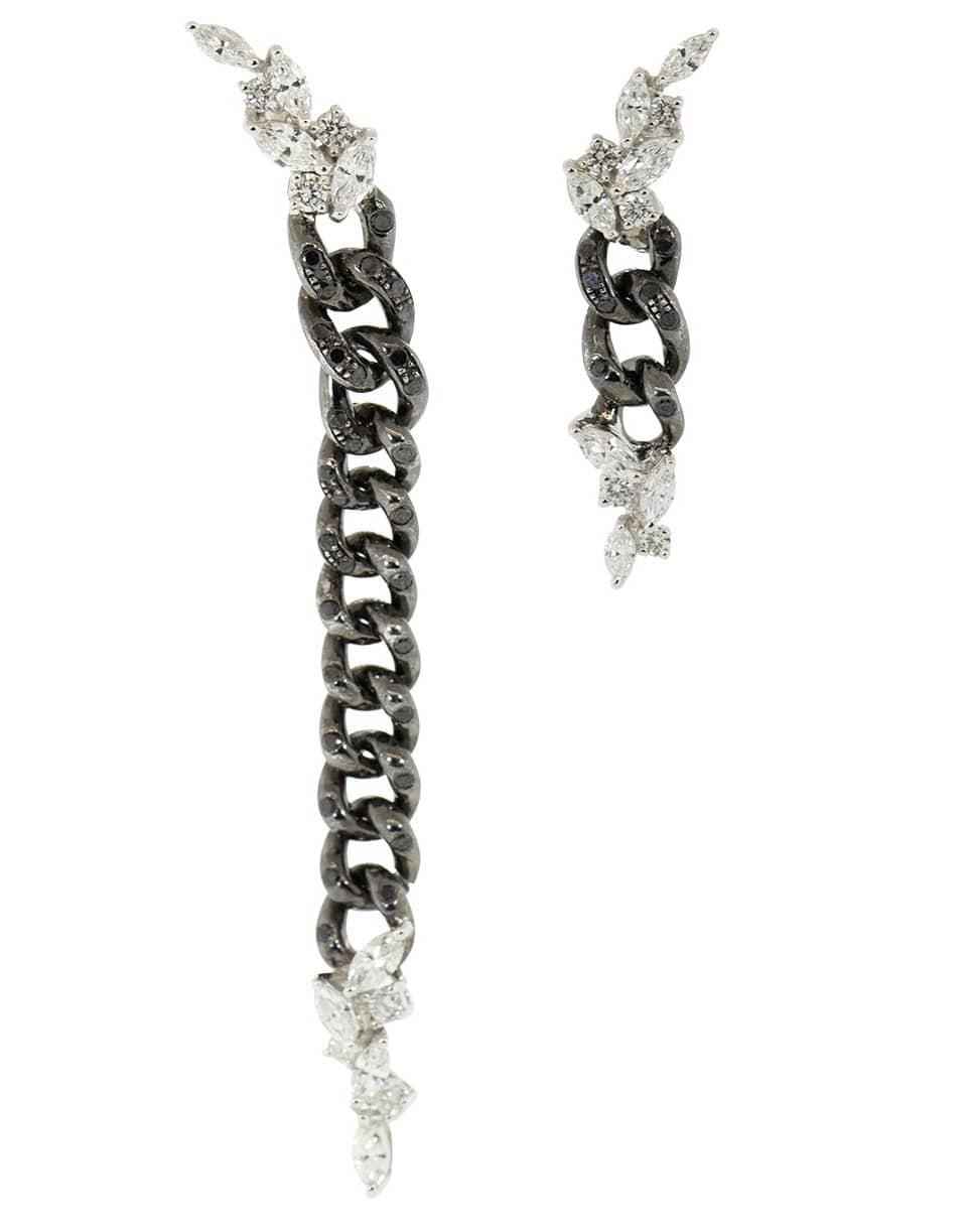 Yeprem chain earrings with round, marquise, and black diamonds set in 18k white gold. For pierced ears.