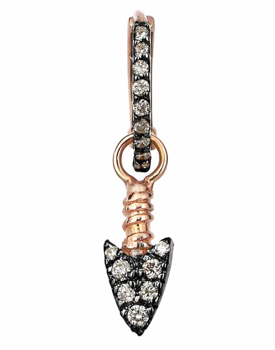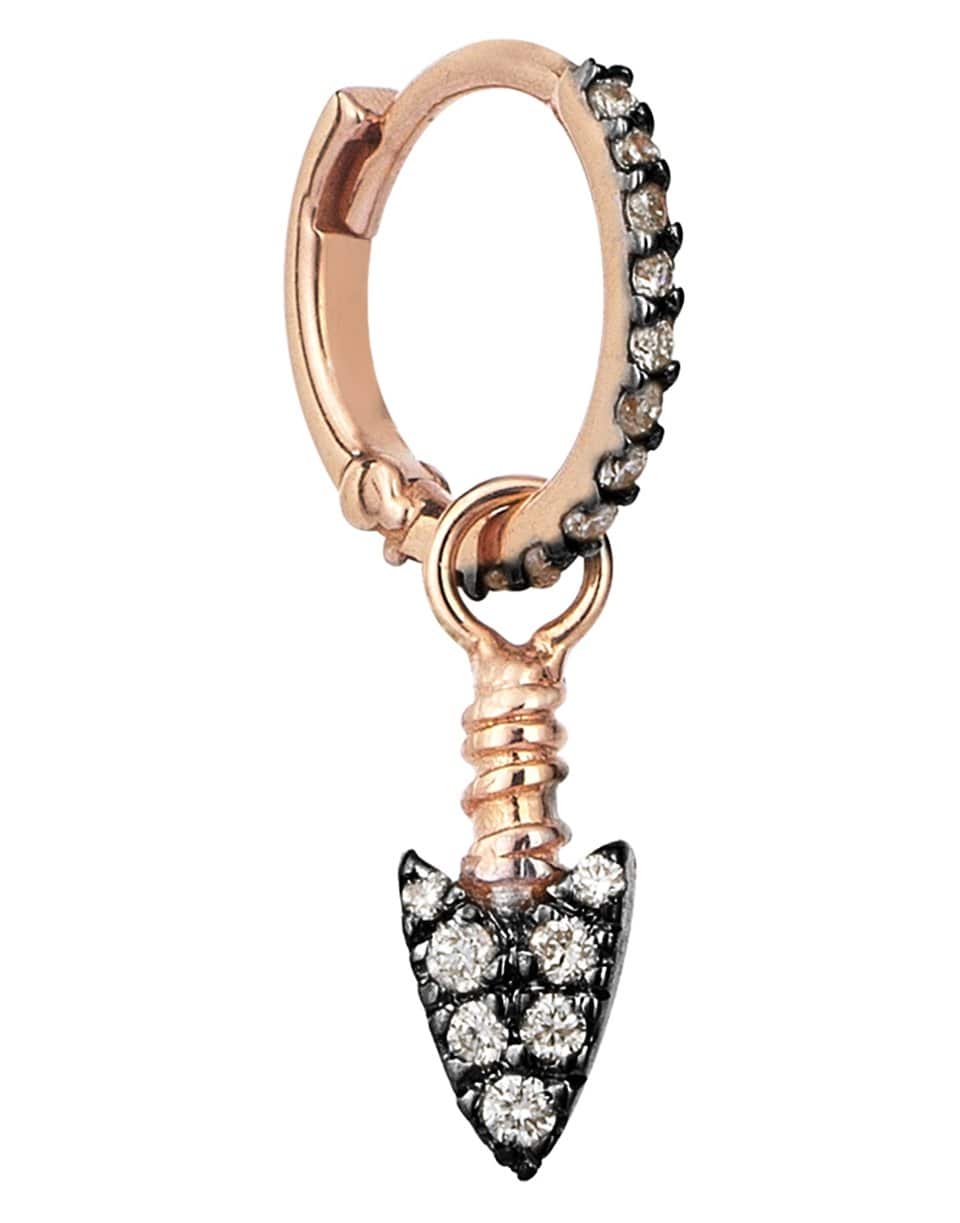 Champagne diamond arrowhead drop single hoop earring set in 14k rose gold.