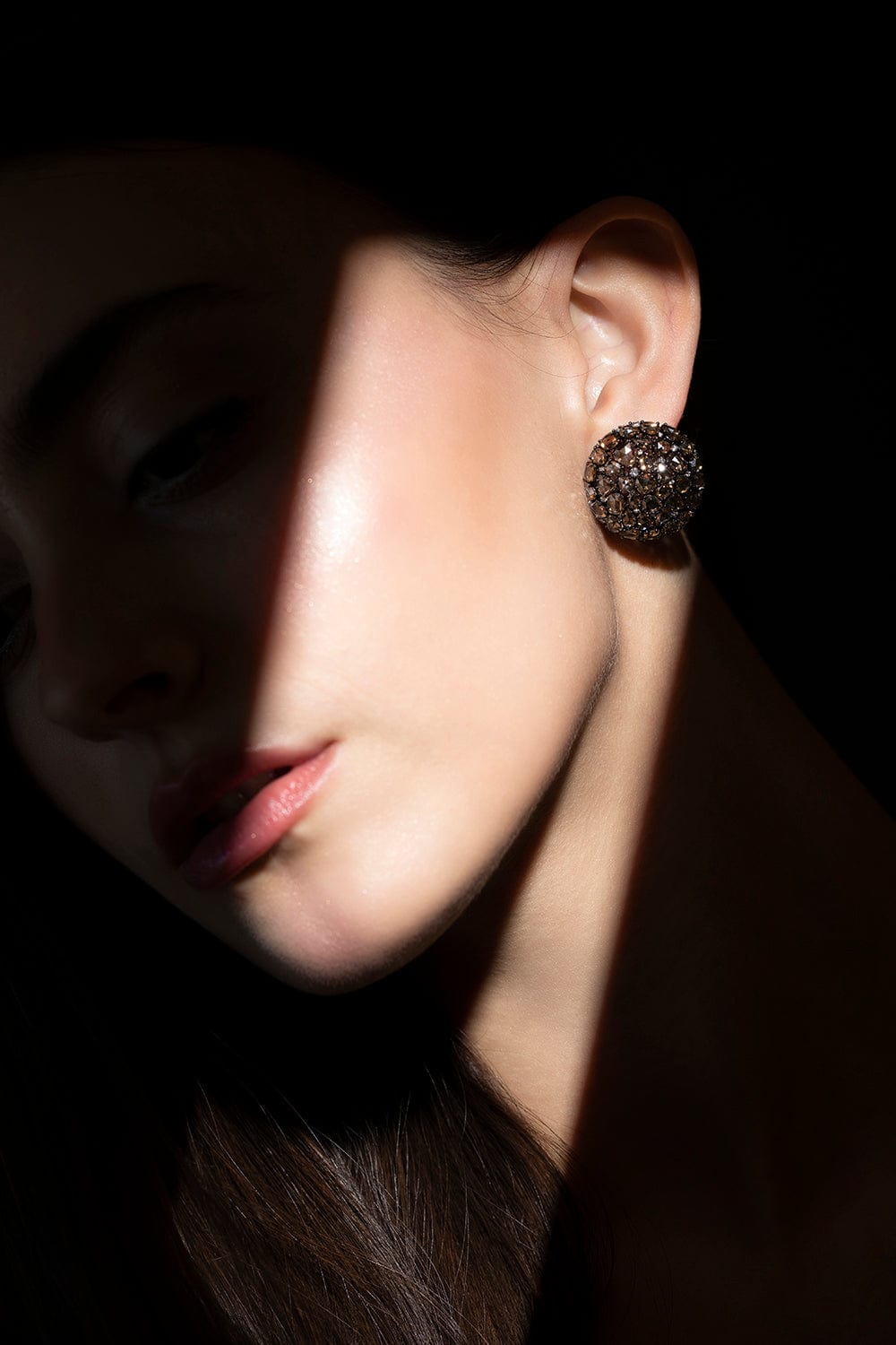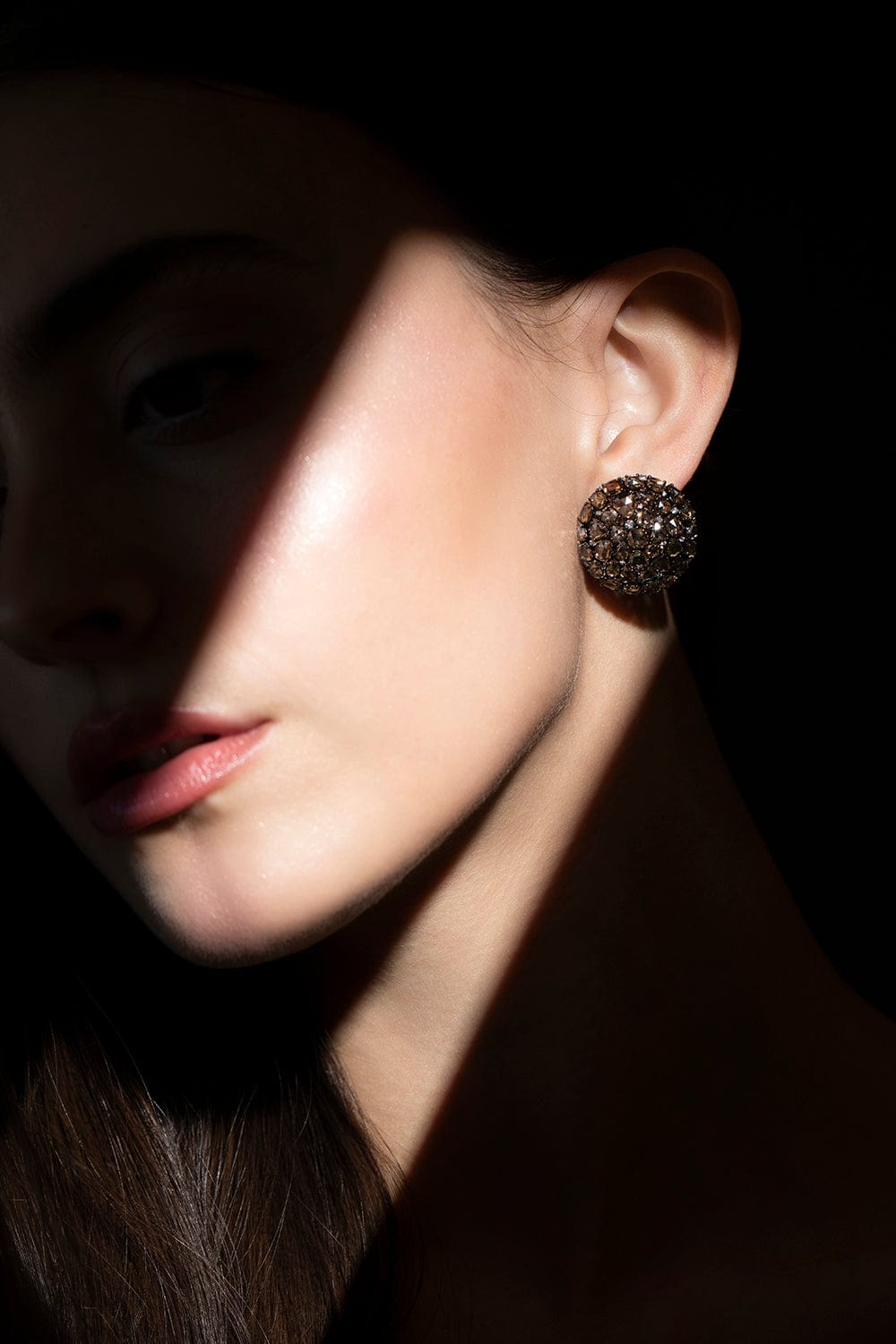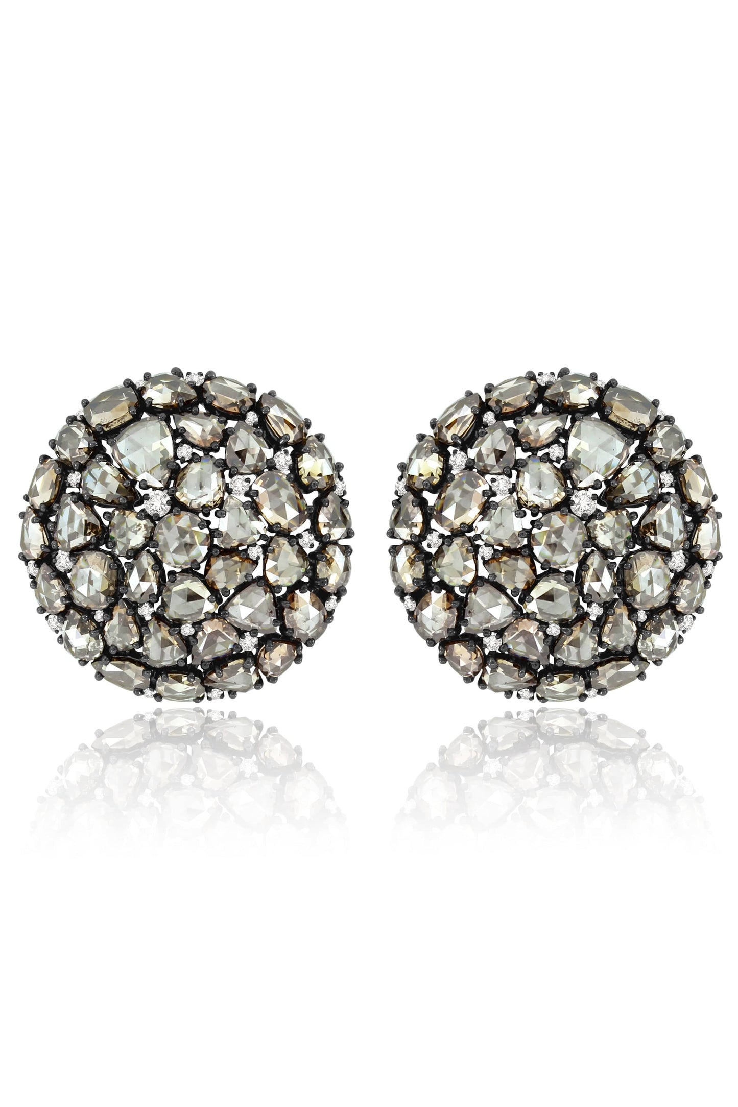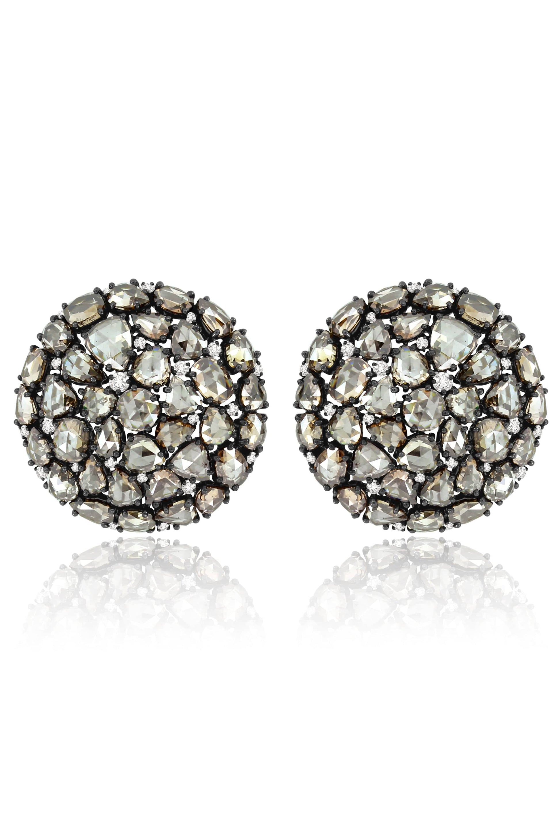 Sutra 18k blackened gold earrings with champagne and round diamonds.