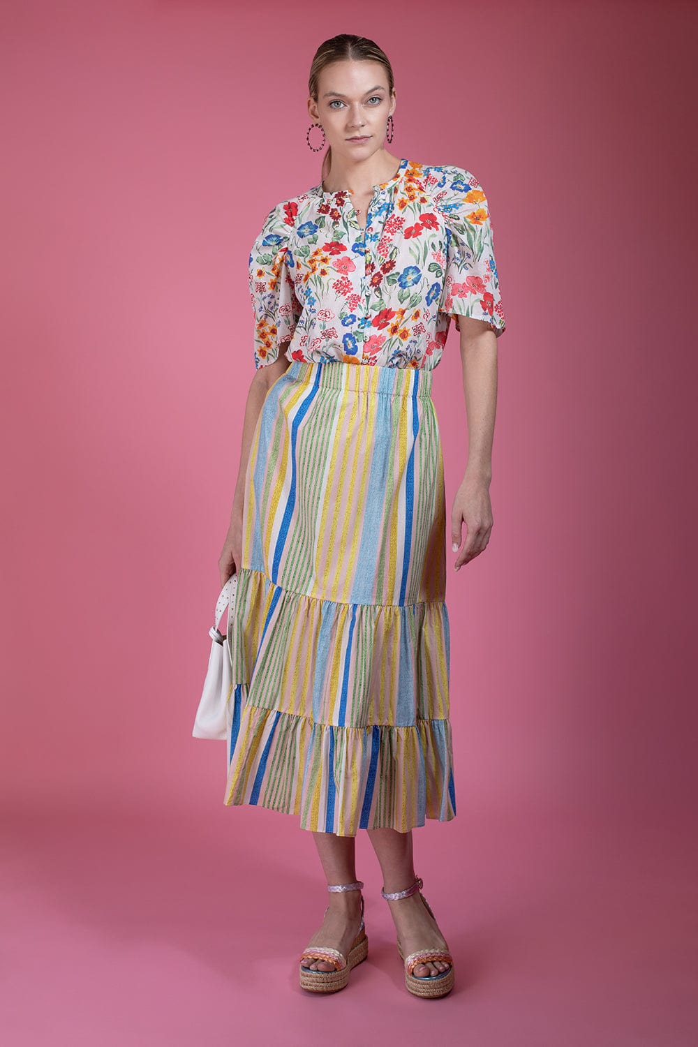 Cara Cara chase midi skirt in basketweave stripe multi.