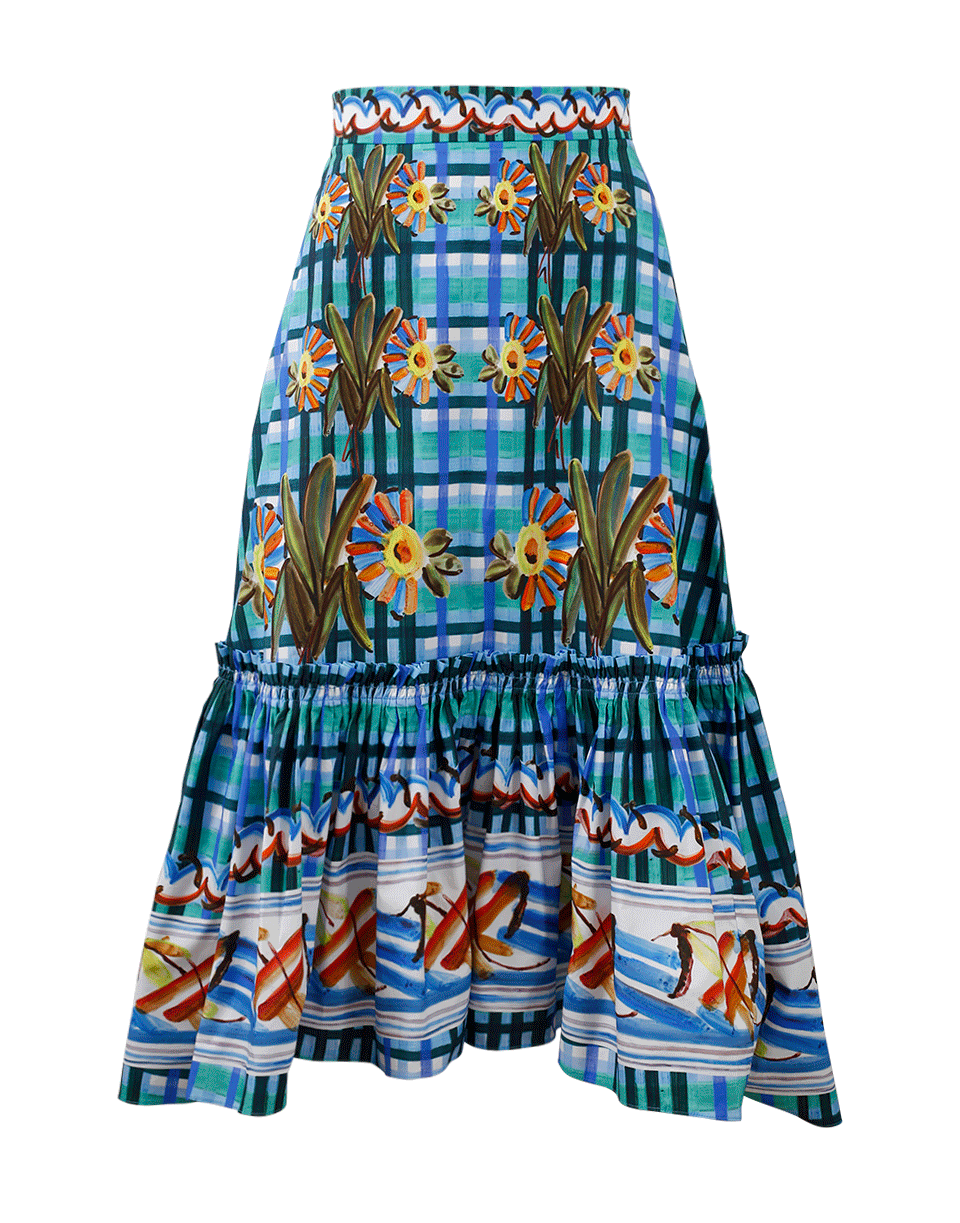 Banded Mid Rise Waistline With Back Zip Closure And Flounce Hem