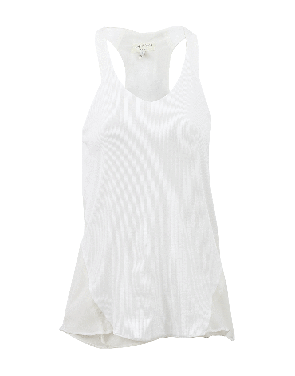 Racerback Design With Front And Back Ribbed Texture And Chiffon Cutout Details On Hem And Shoulder