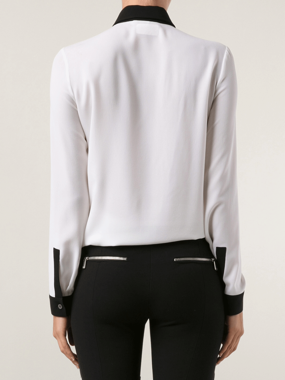 Solid Black Cuffs, Collar, And Placket With One Button Cuff Closures And Scoop Hemline