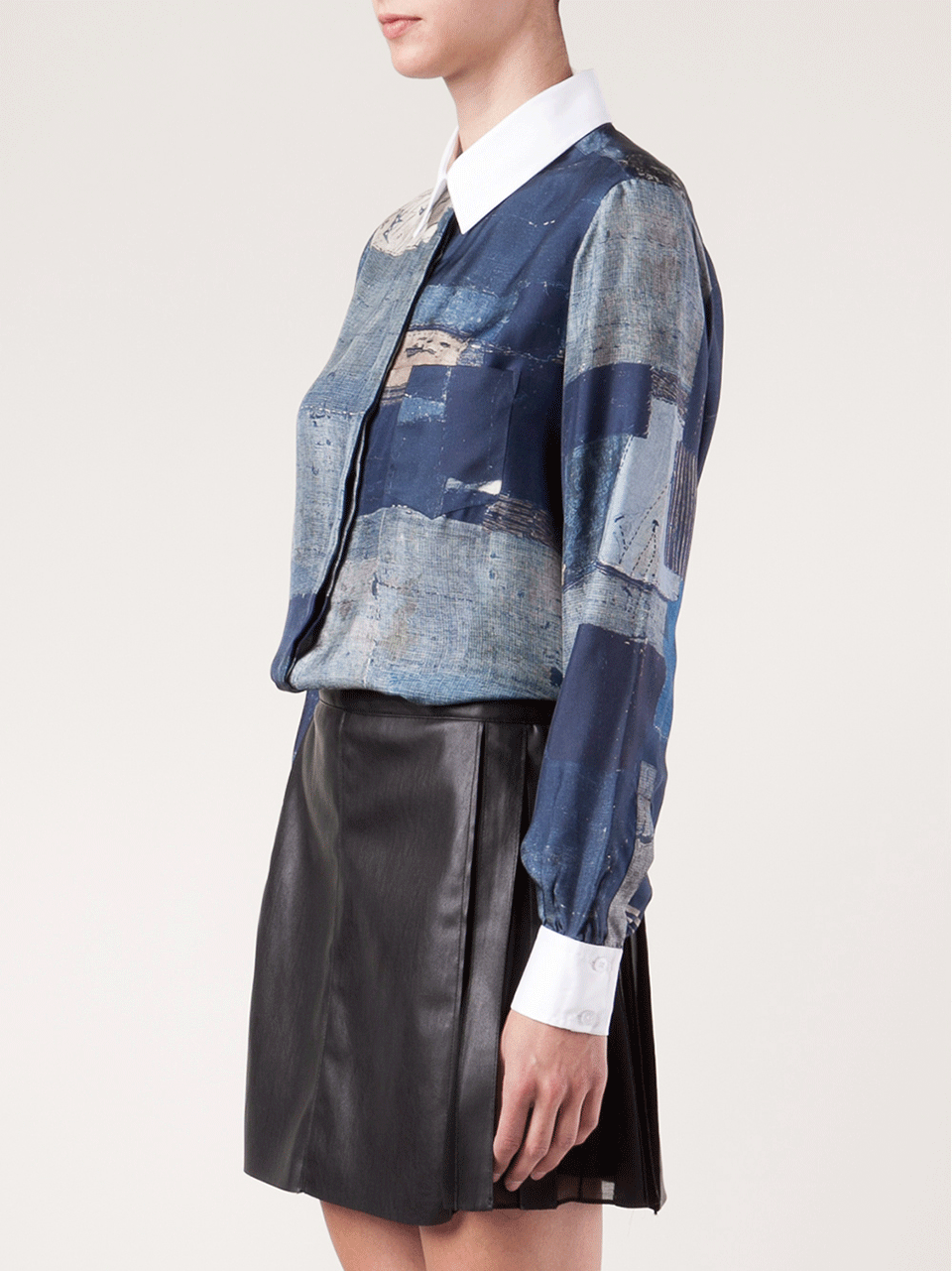 Six Hidden Button Front Closure With One Top Exposed Button And Two Button Cuff Closures