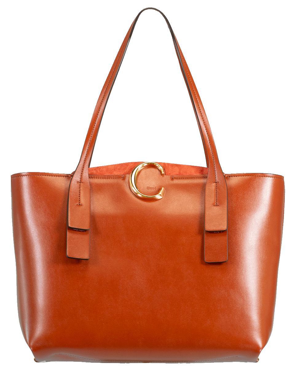 This C leather tote from Chloe features a classic tote silhouette with the signature C goldtone hardware and a top zip closure to secure your belongings. The spacious interior has a zip pocket on the side for extra storage.