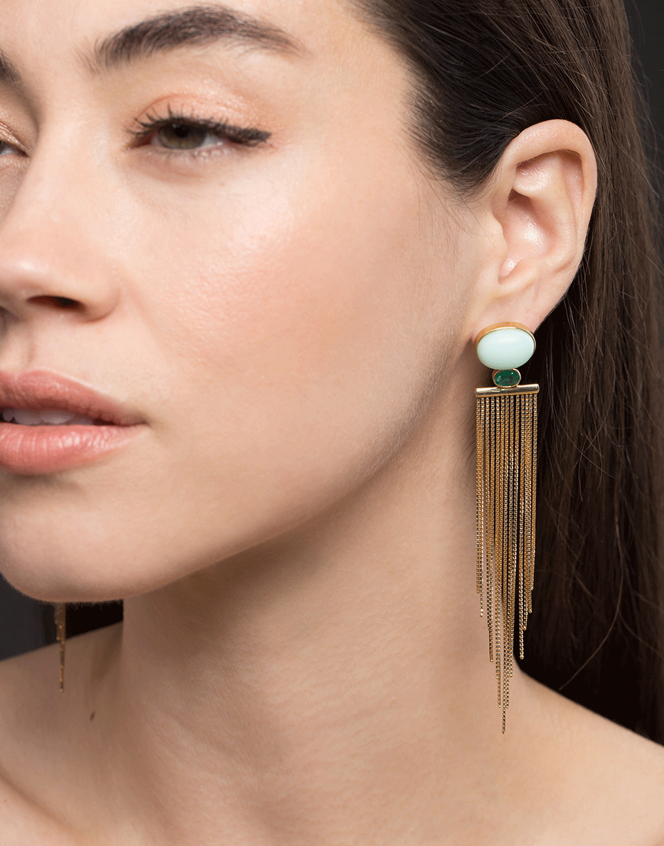 Chrysoprase ballerina earrings from Carla Amorim with cascading 18k yellow gold fringe.