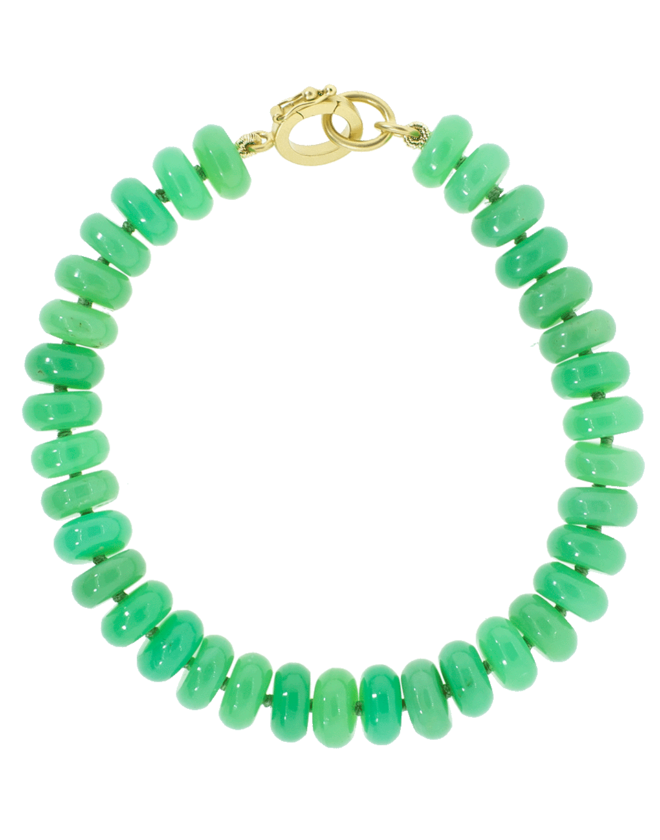 Irene Neuwirth chrysoprase beaded bracelet. 7" length and 8mm with circle hinge fastening.