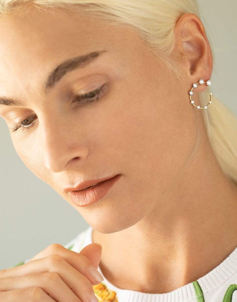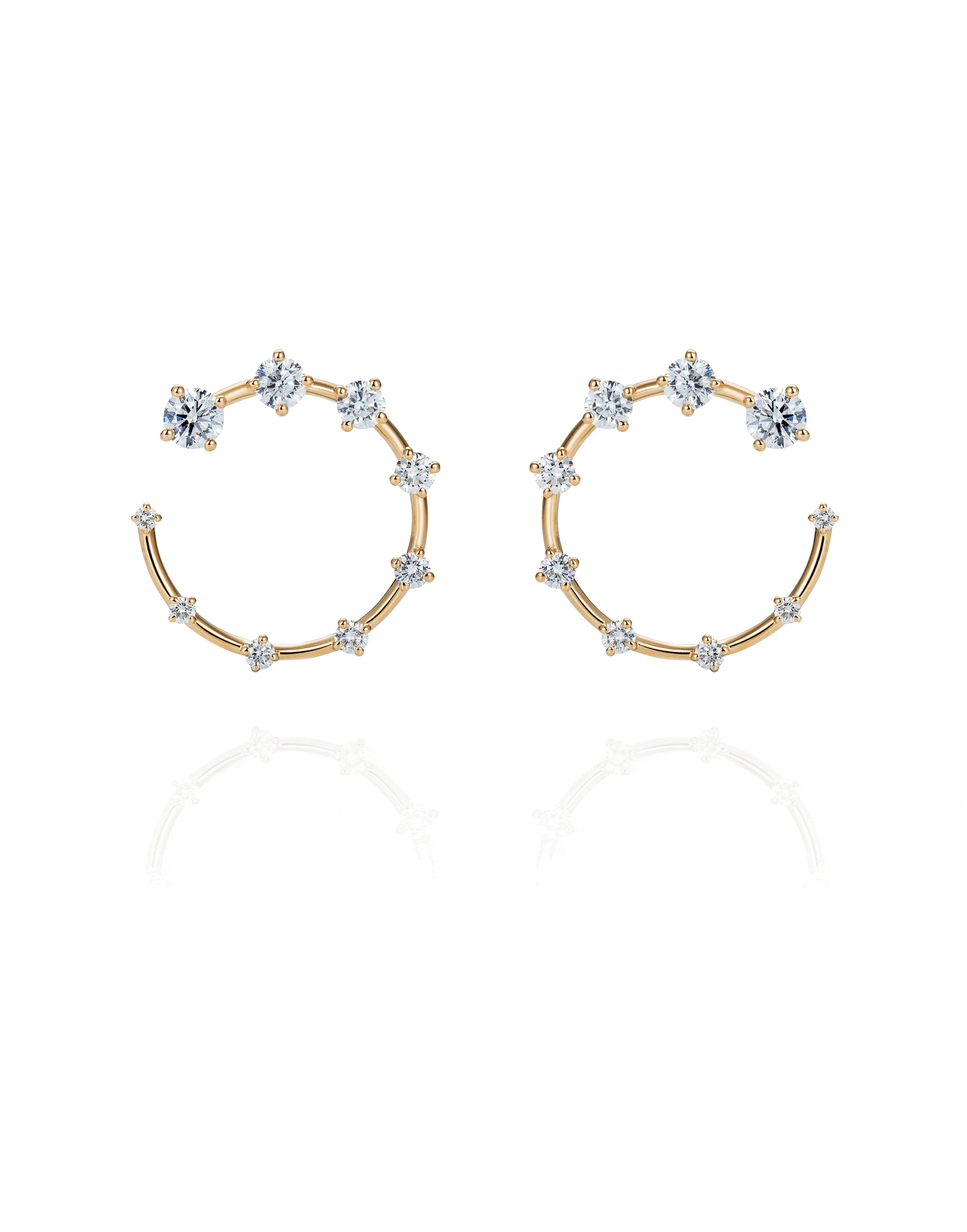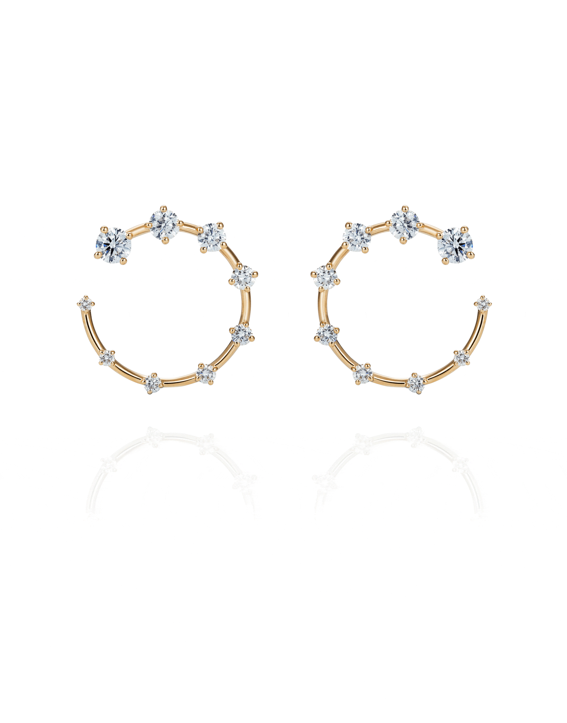 Fernando Jorge Small circle diamond earrings. ‘Brilliant’ is inspired by the natural radiance of diamonds and the brilliant cut. Delicate gold structures in graphic shapes and gradient in diamond sizes. The collection is meant to illuminate the women wearing it.