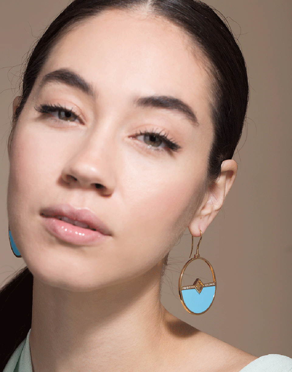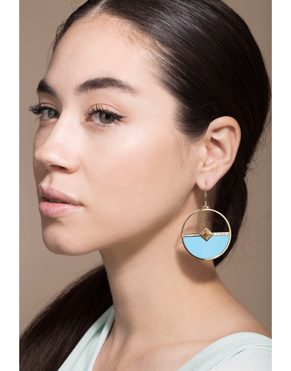 Emily Wheeler turquoise, citrine, and white baguette diamond Horizon earrings from the Kitty Hawk Collection.