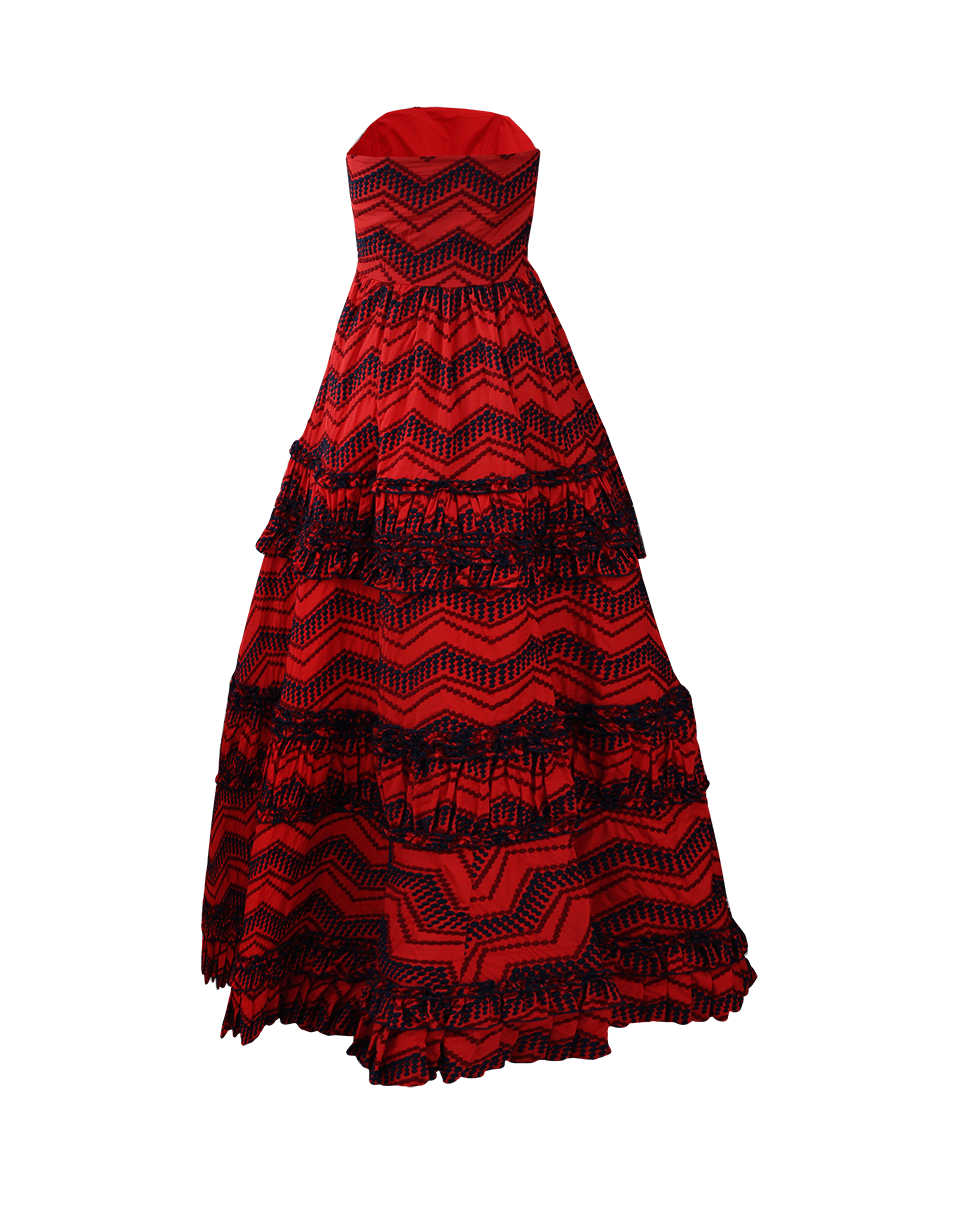 Tiered Full Skirt With Slim Fitting Bust And Ankle Length Cut