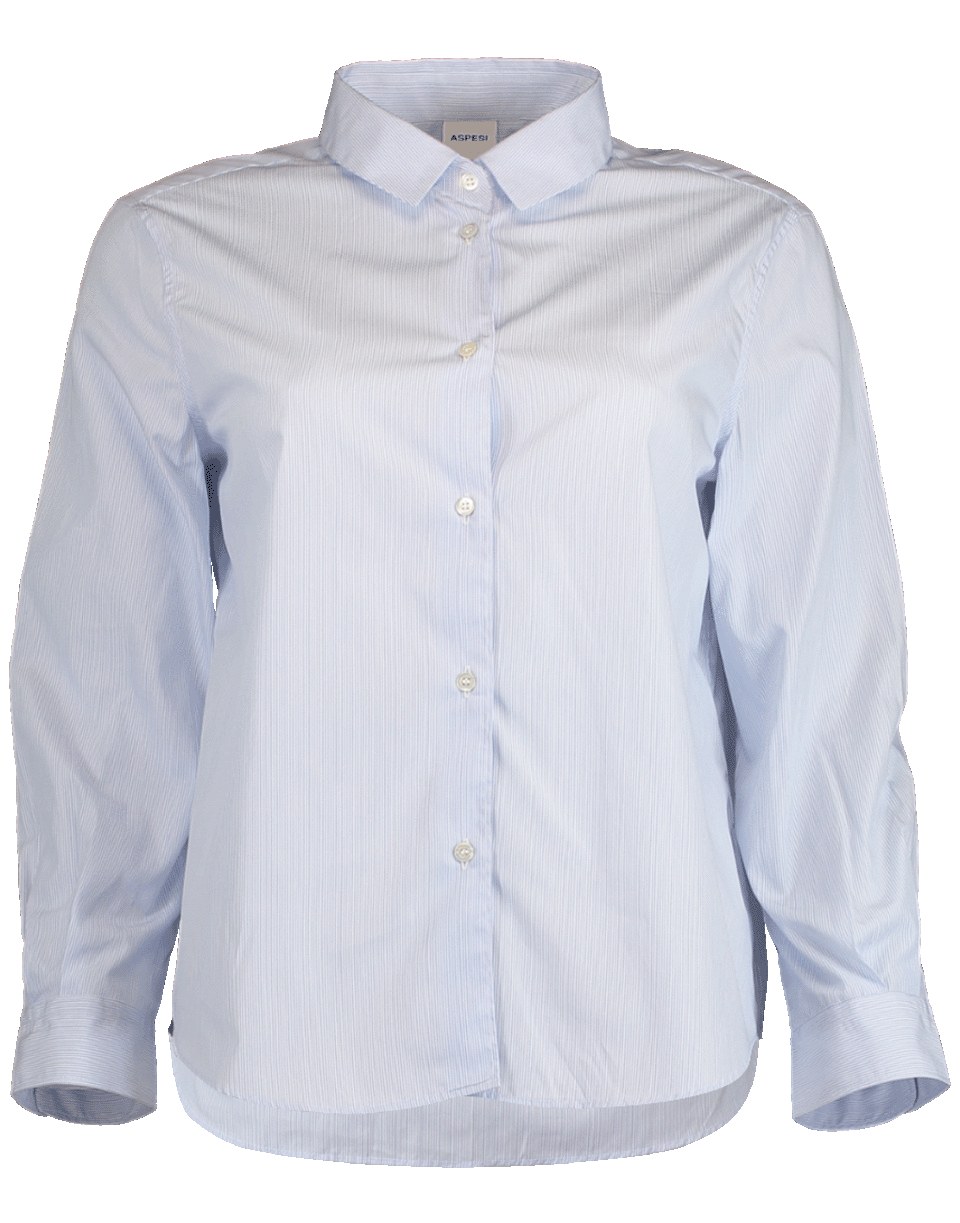 Blue cotton button up shirt by Aspesi. This timeless piece stays true the brand’s early beginnings with its classic shirting silhouette. It features long sleeves, a spread collar, button front, rounded hem and button cuffs.